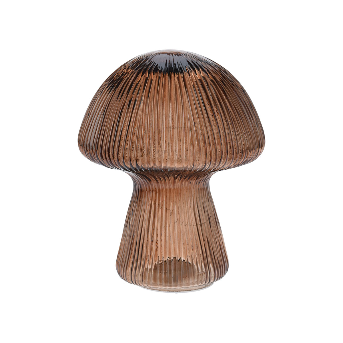 Διακοσμητικό φωτιστικό Led με μοντέρνο σχεδιασμό και σχήμα μανιταριού. Είναι κατασκευασμένο από γυαλί σε καφέ χρώμα με ανάγλυφη επιφάνεια και λειτουργεί με 3 μπαταρίες LR03/ΑAA (δεν περιλαμβάνονται). Διαθέτει χρονοδιακόπτη και έχει 10 λαμπάκια led που δημιουργούν μια ζεστή ατμόσφαιρα. Ιδανικό επιτραπέζιο πορτατίφ που θα διακοσμήσει τον χώρο σας και θα του δώσει μοναδική όψη.