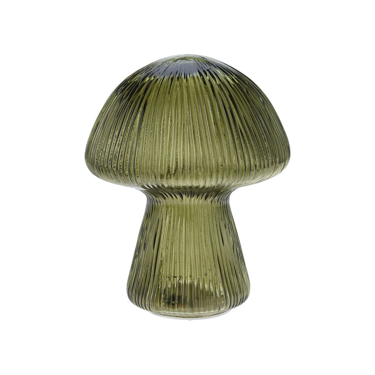 Διακοσμητικό φωτιστικό Led με μοντέρνο σχεδιασμό και σχήμα μανιταριού. Είναι κατασκευασμένο από γυαλί σε πράσινο χρώμα με ανάγλυφη επιφάνεια και λειτουργεί με 3 μπαταρίες LR03/ΑAA (δεν περιλαμβάνονται). Διαθέτει χρονοδιακόπτη και έχει 10 λαμπάκια led που δημιουργούν μια ζεστή ατμόσφαιρα. Ιδανικό επιτραπέζιο πορτατίφ που θα διακοσμήσει τον χώρο σας και θα του δώσει μοναδική όψη.