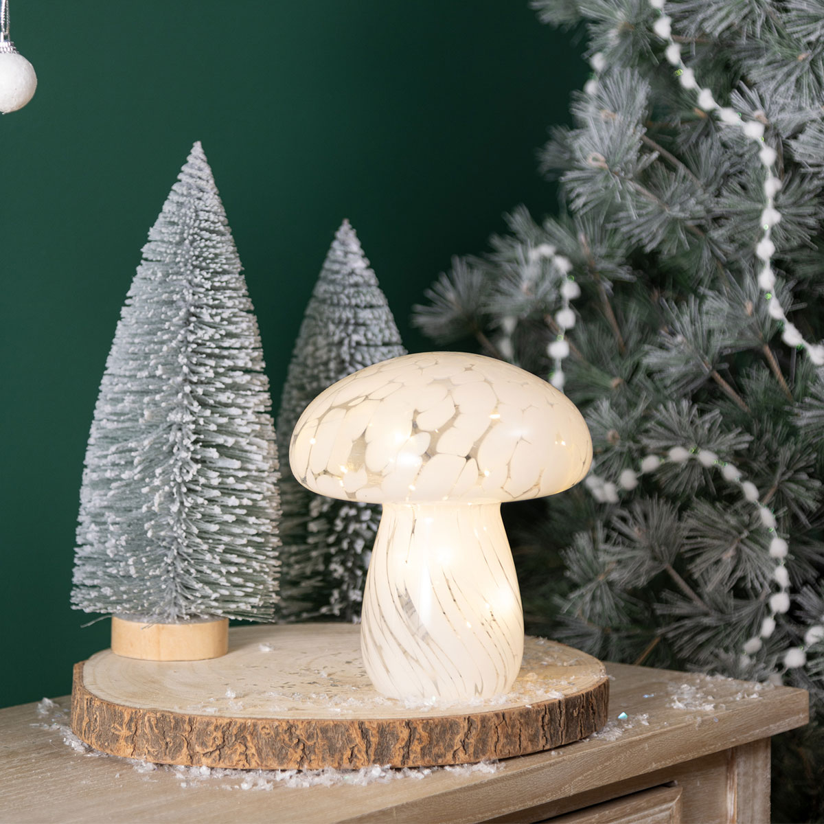 Διακοσμητικό φωτιστικό Led με μοντέρνο σχεδιασμό και σχήμα μανιταριού. Είναι κατασκευασμένο από γυαλί σε λευκό χρώμα με διάφανες λεπτομέρειες και λειτουργεί με 2 μπαταρίες R03/ΑAA (δεν περιλαμβάνονται). Διαθέτει 15 λαμπάκια led λευκού θερμού φωτός που δημιουργούν μια ζεστή ατμόσφαιρα. Ιδανικό επιτραπέζιο πορτατίφ που θα διακοσμήσει τον χώρο σας και θα του δώσει μοναδική όψη.
