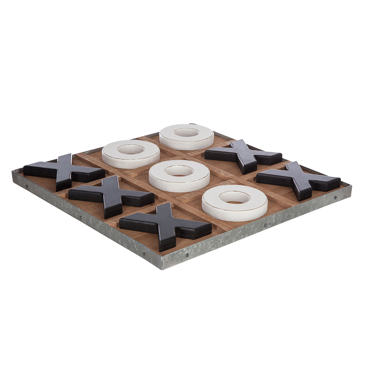 Επιτραπέζια τρίλιζα κατασκευασμένη από ξύλο MDF_E1 σε καφέ χρώμα με γκρι λεπτομέρειες. Διαθέτει 4 λευκά "Ο" πούλια και 5 μαύρα "Χ" πούλια. Ιδανική για να προσφέρει διασκέδαση αλλά και μοντέρνα διακόσμηση στο χώρο σας.