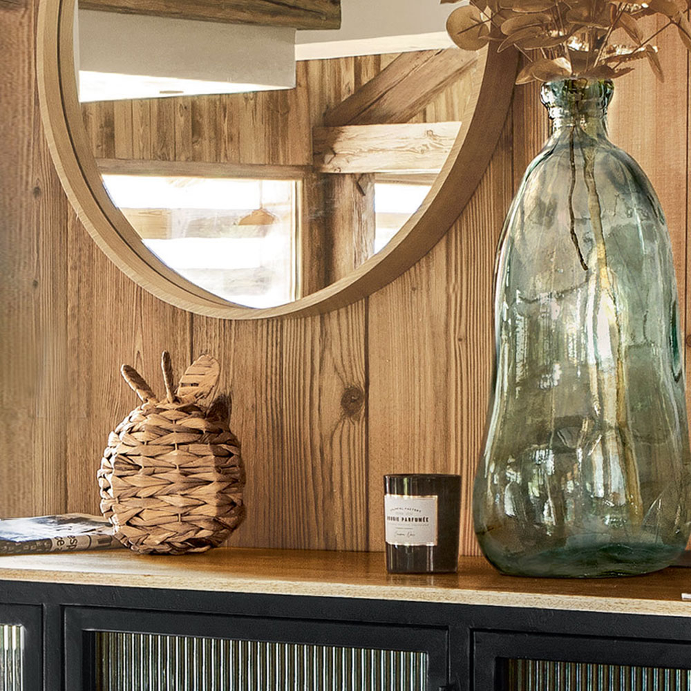 Επιτραπέζιο διακοσμητικό μήλο που θα χαρίσει μοντέρνα διάθεση στον χώρο σας. Είναι ψάθινο, κατασκευασμένο από αποξηραμένο υάκινθο σε φυσική απόχρωση. Ιδανικό για να τοποθετηθεί στο τραπεζάκι του σαλονιού, τον μπουφέ, την κουζίνα και όπου αλλού ταιριάζει!