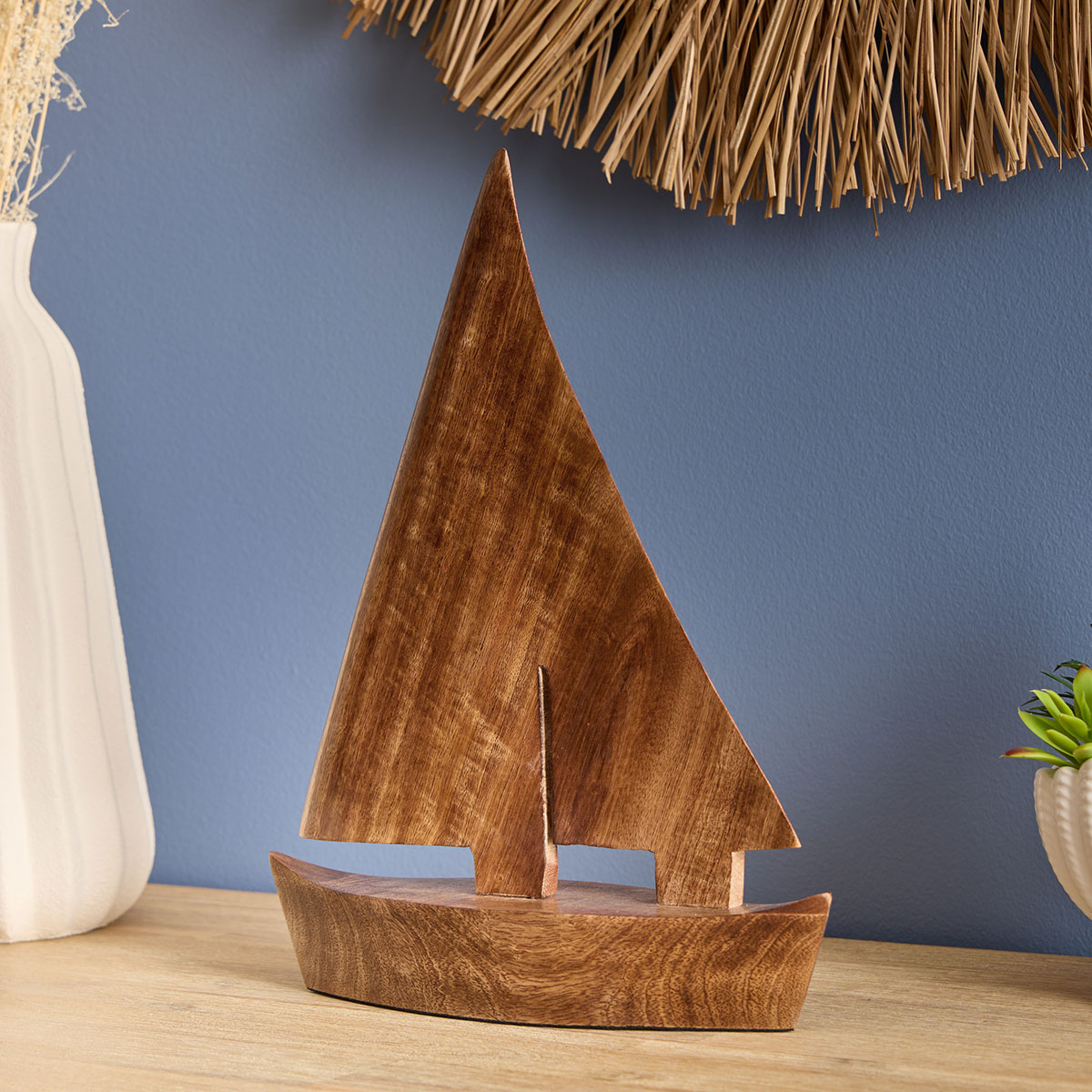 Επιτραπέζιο διακοσμητικό που θα χαρίσει μοναδικό ύφος στο χώρο σας. Είναι κατασκευασμένο από ξύλο μάνγκο σε καφέ χρώμα και έχει σχήμα βάρκας. Ιδανικό για να τοποθετηθεί στο τραπεζάκι του σαλονιού, τον μπουφέ, το γραφείο και όπου αλλού ταιριάζει και να το διακοσμήσει. Συνδυάστε το με τα υπόλοιπα προϊόντα της ίδιας σειράς για ένα ολοκληρωμένο αποτέλεσμα στο χώρο σας.