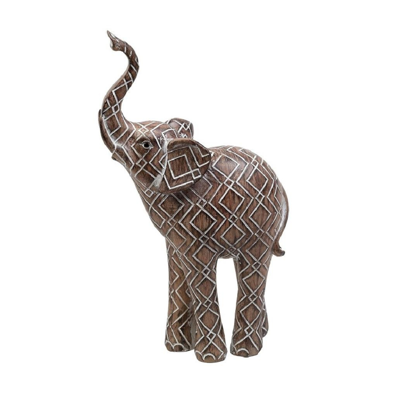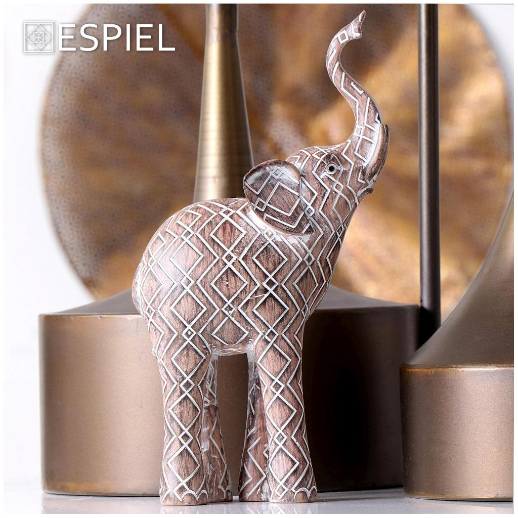 Διακοσμητικό χώρου από την εταιρεία Espiel σε μορφή ελέφαντα. Έχει μπεζ χρώμα με λευκές λεπτομέρειες και έθνικ ύφος. Ένα διακοσμητικό που θα δώσει μοναδική όψη στην διακόσμηση του σαλονιού, της τραπεζαρίας ή όποιου χώρου τοποθετηθεί.