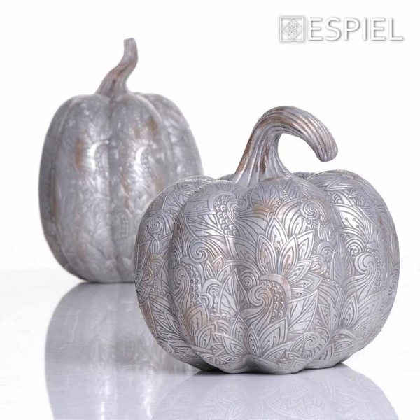Διακοσμητικό χώρου σε σχήμα κολοκύθας από την εταιρεία Espiel. Είναι κατασκευασμένη από υλικό polyresin με ανάγλυφη επιφάνεια και ασημί χρώμα. Ένα μοντέρνο διακοσμητικό που θα δώσει μοναδική όψη στην διακόσμηση του σαλονιού, της τραπεζαρίας ή όποιου χώρου τοποθετηθεί.