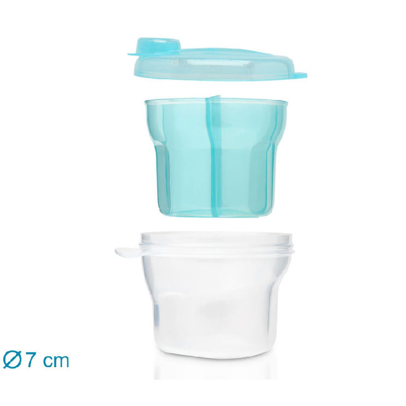 Δοσομετρητής σκόνης γάλακτος σε σιέλ χρώμα από την εταιρία Kiokids. Κατασκευασμένο από πλαστικό υλικό. Μικρό, ελαφρύ και εύχρηστο, είναι ιδανικό για τις βόλτες και τα ταξίδια σας. Έχει θέσεις για 3 γεύματα, ενώ είναι διάφανος για να σας επιτρέπει να βλέπετε το περιεχόμενο του. Διαθέτει και επιπλέον φαγητοδοχείο έτσι ώστε μόλις μεγαλώσει το μωρό σας, να το χρησιμοποιείτε χωρίς το διαχωριστικό και να τοποθετείτε μέσα την κρέμα ή οτιδήποτε άλλο θέλετε. Φροντίστε να είναι στεγνό και καθαρό για την αποφυγή μυκήτων.
