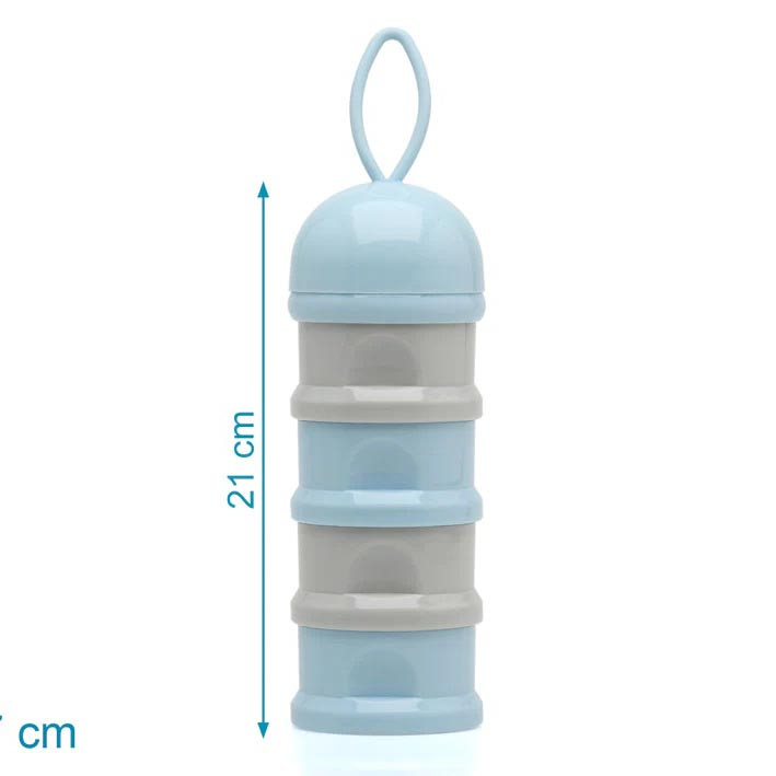 Δοσομετρητής σκόνης γάλακτος 4 θέσεων σε γαλάζιο-γκρι χρώμα από την εταιρεία Kiokids. Είναι κατασκευασμένος από πλαστικό. Το κάθε δοχείο έχει χωρητικότητα 85ml ενώ περιλαμβάνει και ένα επιπλέον ταπεράκι για να φτιάξετε την κρέμα του μωρού σας ή να το χρησιμοποιήσετε όπως εσείς επιθυμείτε. Φροντίστε να είναι στεγνό και καθαρό για την αποφυγή μυκήτων.