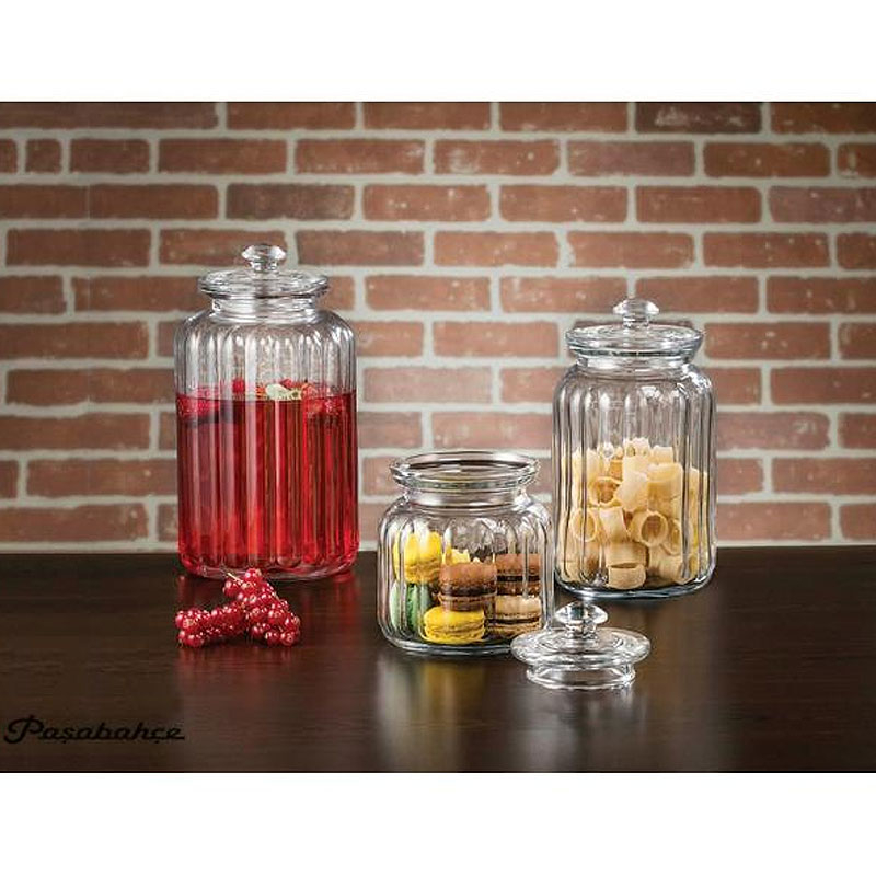 Διάφανο βάζο κουζίνας χωρητικότητας 1500ml από την εταιρεία Pasabahce By Espiel. Είναι ανάγλυφο, κατασκευασμένο από διάφανο γυαλί κατάλληλο για επαφή με τρόφιμα και διαθέτει καπάκι. Ιδανικό για να αποθηκεύσετε τα τρόφιμά σας και να διατηρήσετε οργανωμένη την κουζίνα σας.