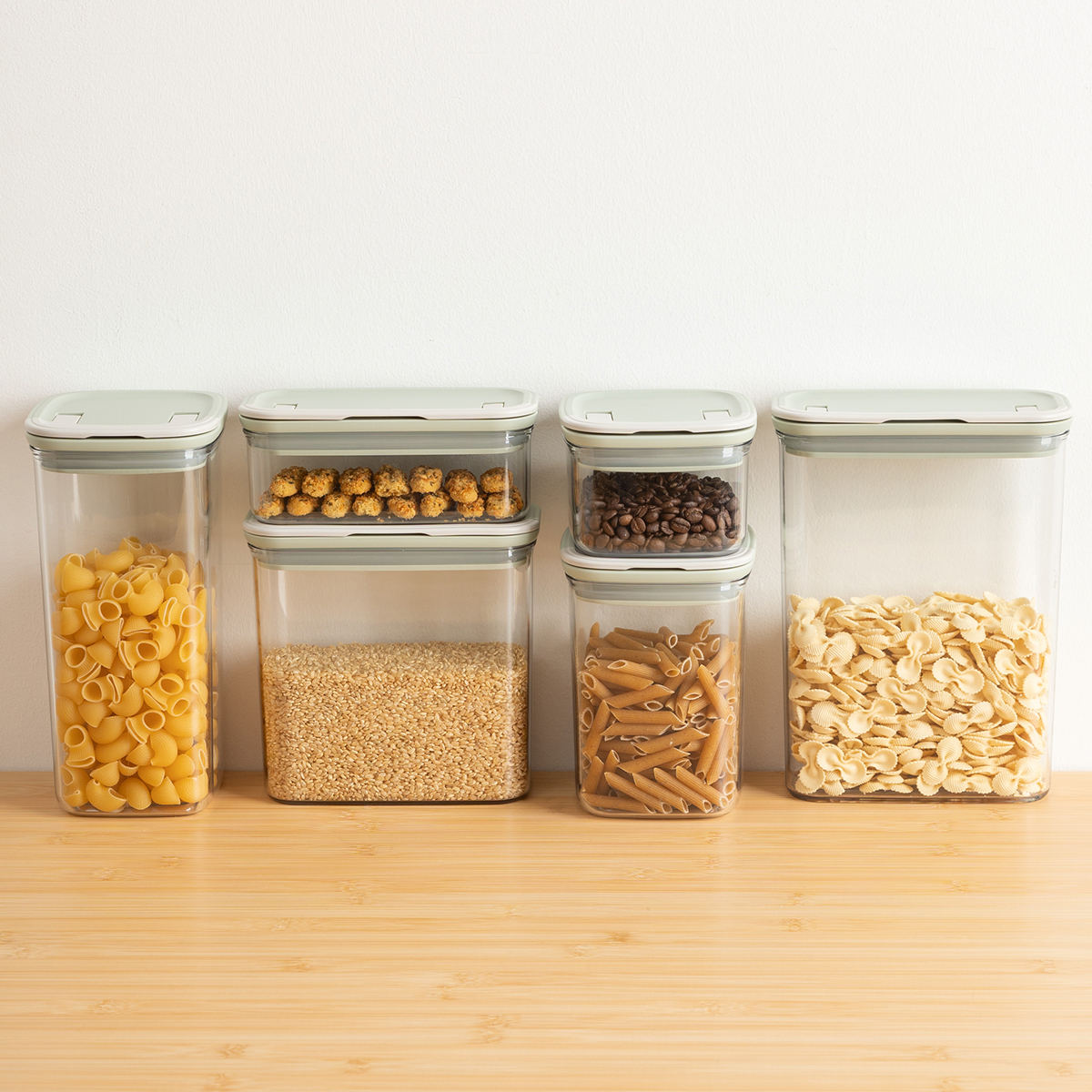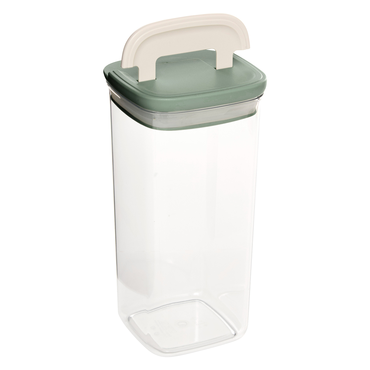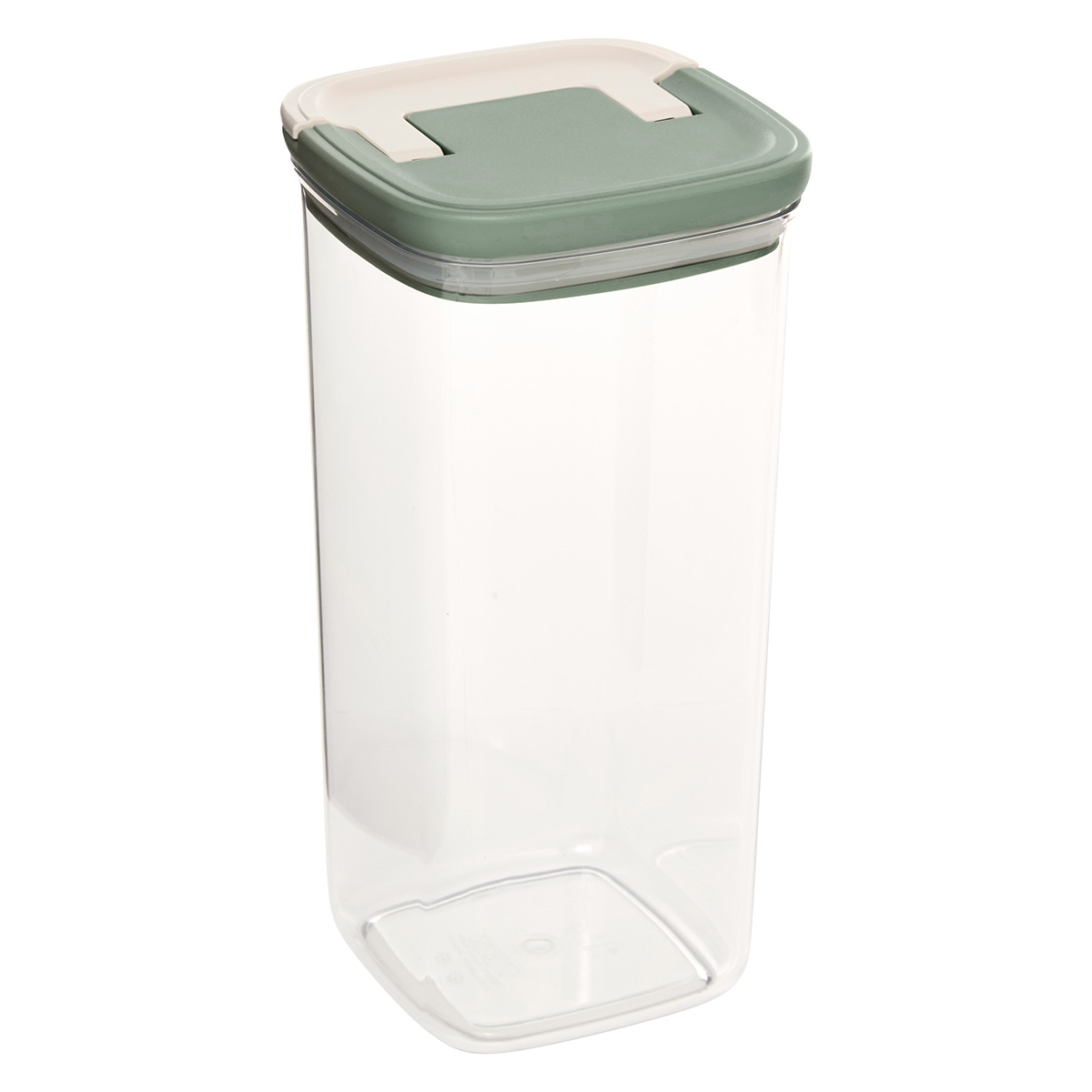 Δοχείο τροφίμων για την κουζίνα σας. Είναι κατασκευασμένο από διάφανο πλαστικό υλικό, κατάλληλο για επαφή με τρόφιμα και έχει χακί καπάκι με αεροστεγές κλείσιμο. Διαθέτει λαβή για εύκολη μεταφορά. Χωρητικότητα 1800ml. Συνδυάστε το με τα υπόλοιπα προϊόντα του ίδιου σετ για ένα ολοκληρωμένο αποτέλεσμα.