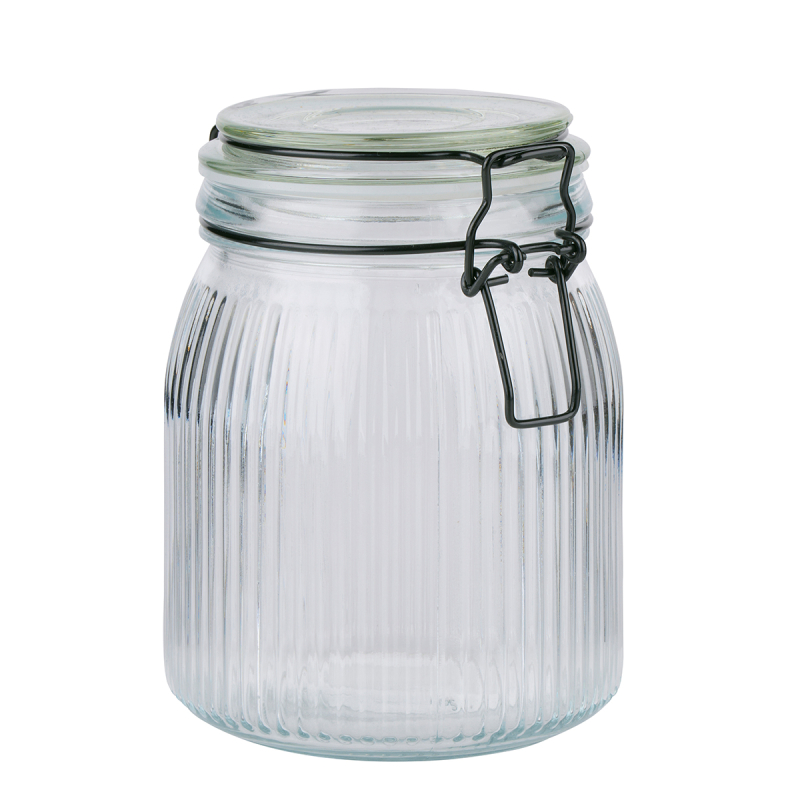 Δοχείο για τρόφιμα χωρητικότητας 1000ml από την εταιρεία Alpina. Είναι κατασκευασμένο από διάφανο γυαλί borosilicate με ανάγλυφο σχέδιο και σας επιτρέπει να βλέπετε το περιεχόμενο του δοχείου. Διαθέτει καπάκι το οποίο κλείνει αεροστεγώς. Ιδανικό για να αποθηκεύσετε ζυμαρικά, όσπρια, ξηρούς καρπούς ακόμα και υγρά αφού το αεροστεγές κλείσιμο δεν επιτρέπει να τρέξει καθόλου υγρό. Συνδυάστε το με τα υπόλοιπα μεγέθη της σειράς για ένα ολοκληρωμένο αποτέλεσμα.