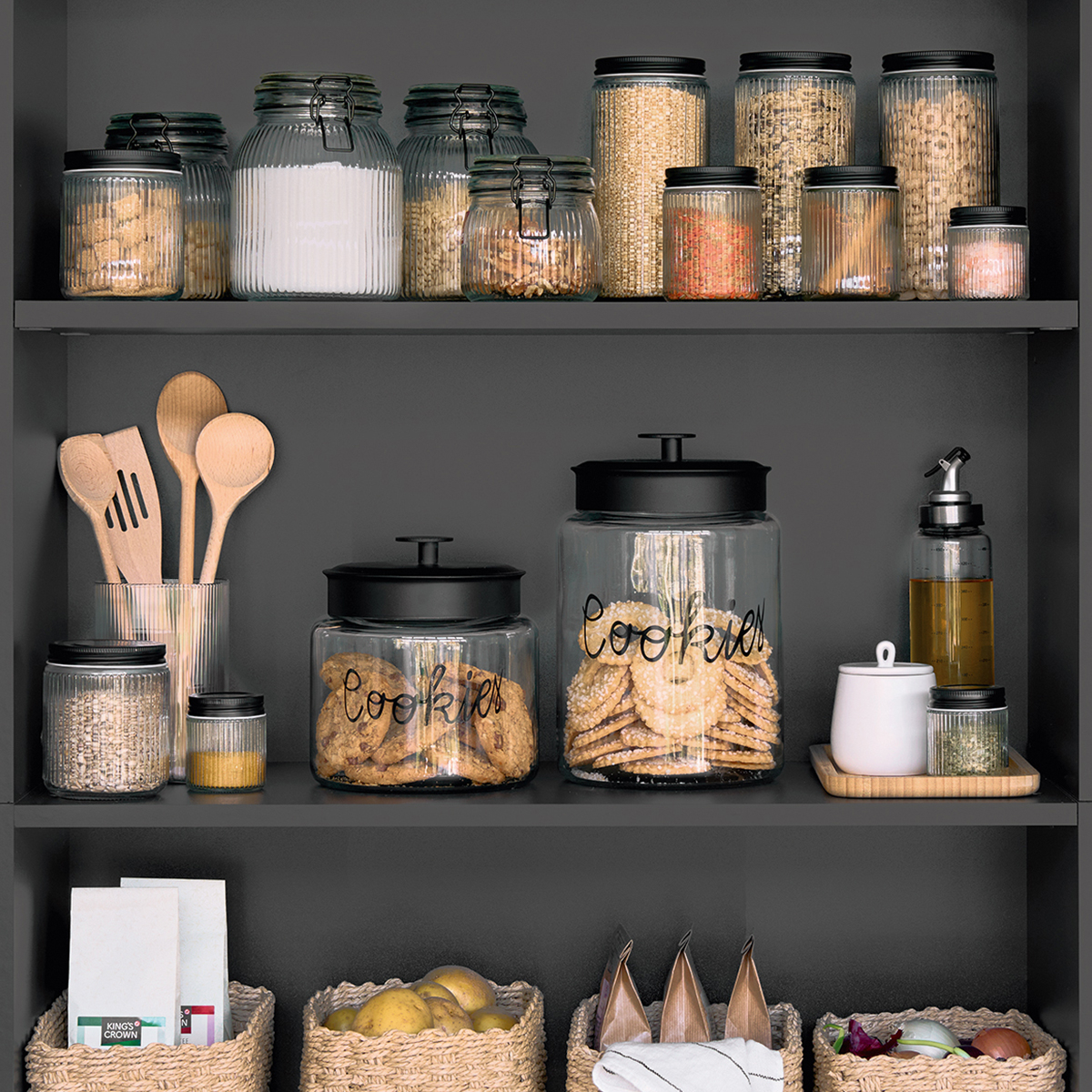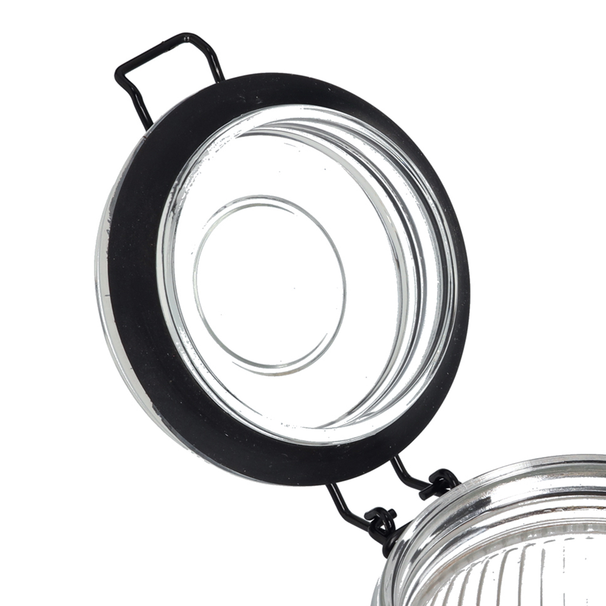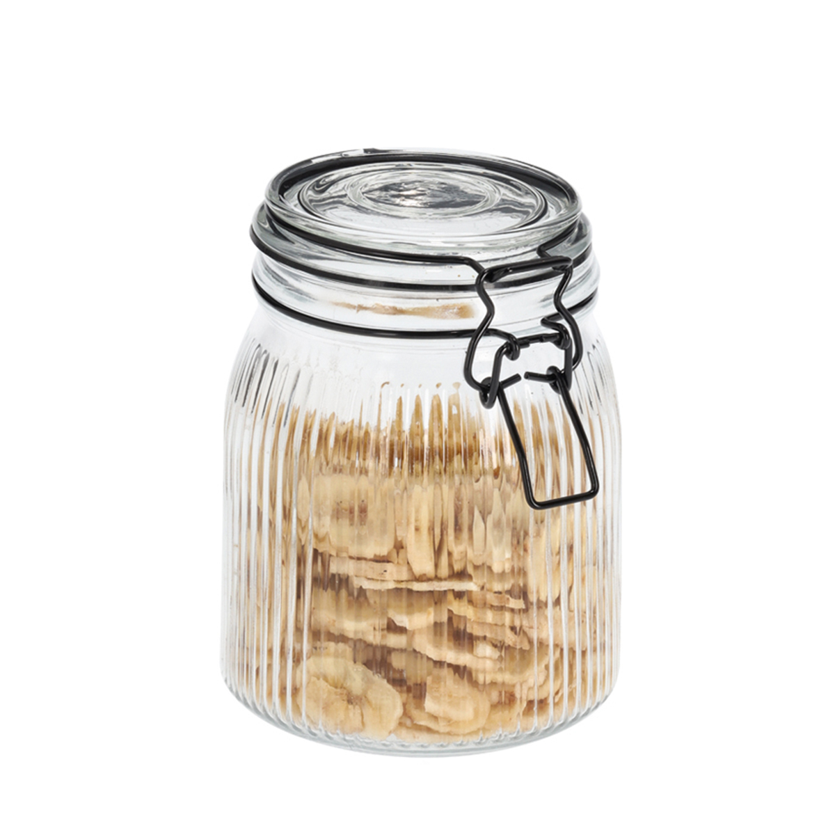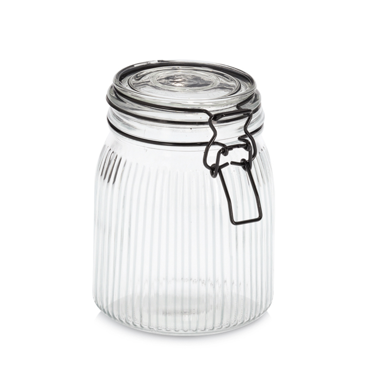 Δοχείο για τρόφιμα χωρητικότητας 1000ml. Είναι κατασκευασμένο από διάφανο γυαλί που σας επιτρέπει να βλέπετε το περιεχόμενο του δοχείου. Διαθέτει καπάκι με μεταλλικές λεπτομέρειες, το οποίο κλείνει αεροστεγώς με κλιπ. Ιδανικό για να αποθηκεύσετε ζυμαρικά, όσπρια, ξηρούς καρπούς ακόμα και υγρά αφού το αεροστεγές κλείσιμο δεν επιτρέπει να τρέξει καθόλου υγρό. Συνδυάστε το με τα υπόλοιπα μεγέθη της σειράς για ένα ολοκληρωμένο αποτέλεσμα.