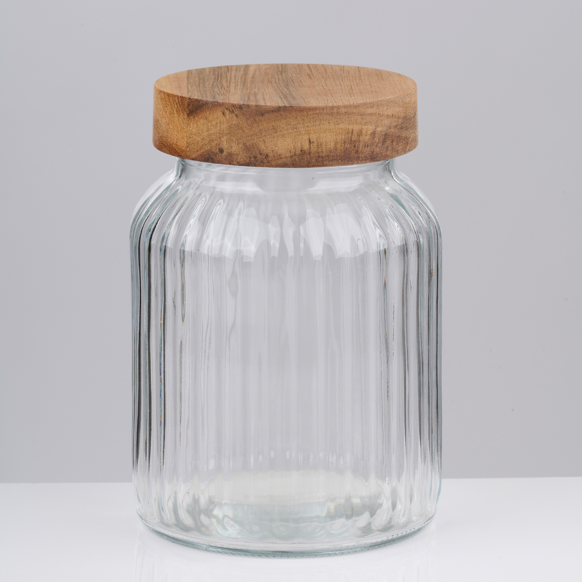 Δοχείο για τρόφιμα χωρητικότητας 1000ml από την εταιρεία Alpina. Είναι κατασκευασμένο από διάφανο γυαλί με ανάγλυφο σχέδιο και σας επιτρέπει να βλέπετε το περιεχόμενο του δοχείου. Διαθέτει βιδωτό καπάκι από ξύλο ακακίας. Ιδανικό για να αποθηκεύσετε ζυμαρικά, όσπρια, ξηρούς καρπούς και ό,τι άλλο θέλετε. Συνδυάστε το με τα υπόλοιπα μεγέθη της σειράς για ένα ολοκληρωμένο αποτέλεσμα.
