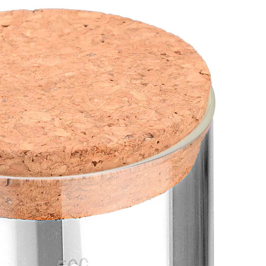 Δοχείο για τρόφιμα χωρητικότητας 500ml από την εταιρεία εstia. Είναι κατασκευασμένο από διάφανο γυαλί. Σας επιτρέπει να βλέπετε το περιεχόμενο του δοχείου. Το καπάκι είναι κατασκευασμένο από φελλό. Ιδανικό για να αποθηκεύσετε ζυμαρικά, όσπρια, ξηρούς καρπούς ακόμα και υγρά αφού το αεροστεγές κλείσιμο δεν επιτρέπει να τρέξει καθόλου υγρό. Συνδυάστε το με τα υπόλοιπα μεγέθη της σειράς για ένα ολοκληρωμένο αποτέλεσμα.