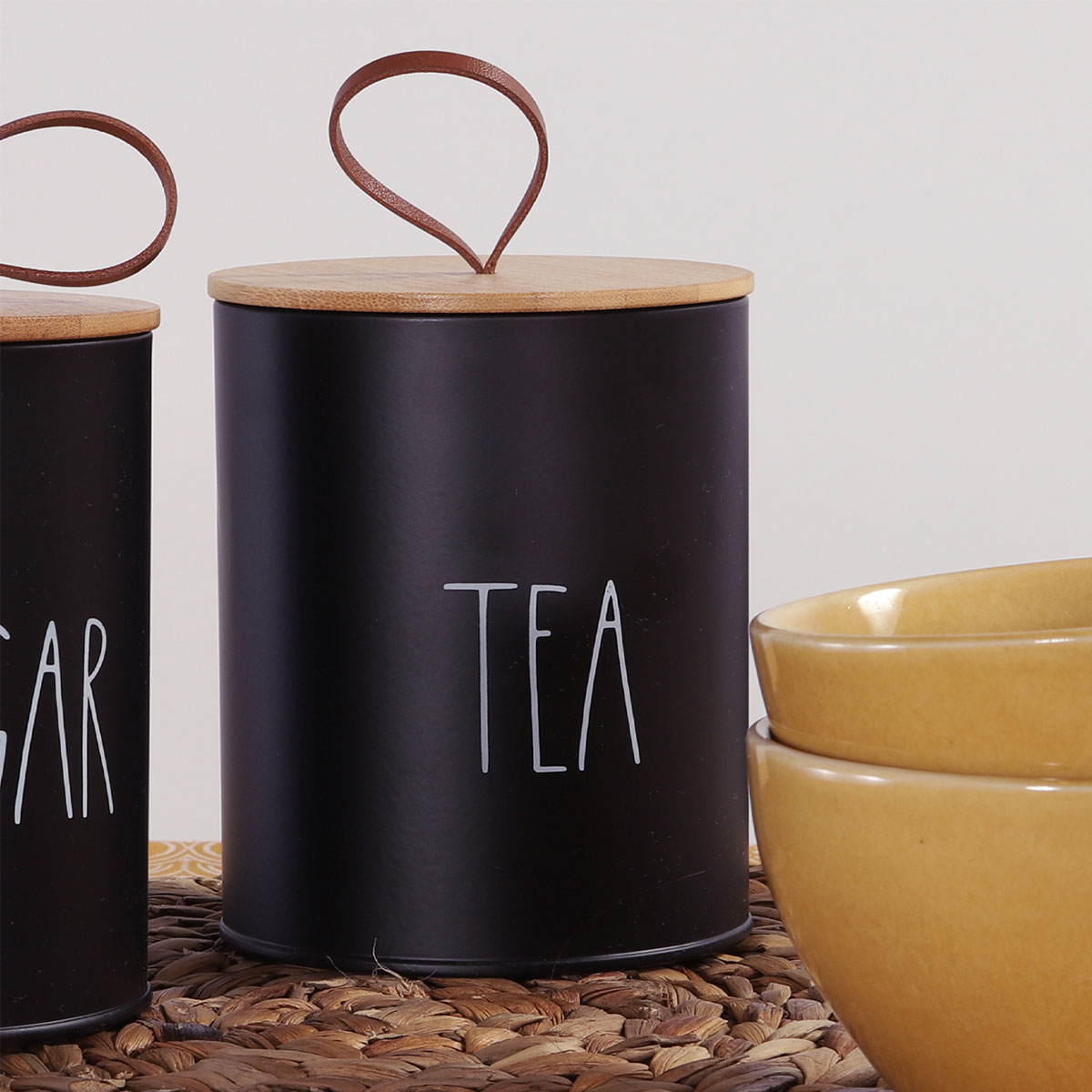 Δοχείο τσαγιού της εταιρείας Nef-Nef σε μαύρο χρώμα. Είναι κατασκευασμένη από μεταλλικό υλικό και έχει ξύλινο καπάκι σε φυσικό χρώμα. Ιδανικό για να αποθηκεύσετε το τσάι σας και να διατηρήσετε οργανωμένη την κουζίνα και τα ντουλάπια σας. Συνδυάστε το με τα υπόλοιπα είδη της ίδιας συλλογής για ένα ολοκληρωμένο αποτέλεσμα στο χώρο σας.