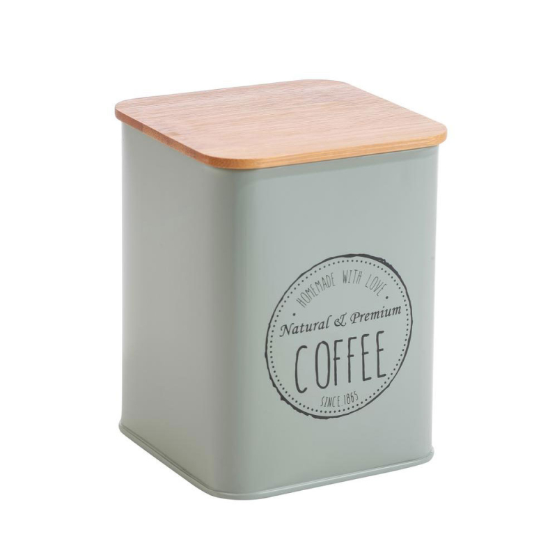 Δοχείο για τον καφέ από την εταιρεία Oriana Ferelli σε βεραμάν χρώμα με μοντέρνο σχεδιασμό. Είναι κατασκευασμένο από μεταλλικό υλικό. Διαθέτει καπάκι από bamboo σε φυσική απόχρωση. Ιδανικό για να αποθηκεύσετε τον καφέ για να διατηρείται πάντα φρέσκος και να μην χάνει τα αρώματα του. Συνδυάστε το με τα υπόλοιπα είδη της ίδιας συλλογής για ένα ολοκληρωμένο αποτέλεσμα στο χώρο σας.