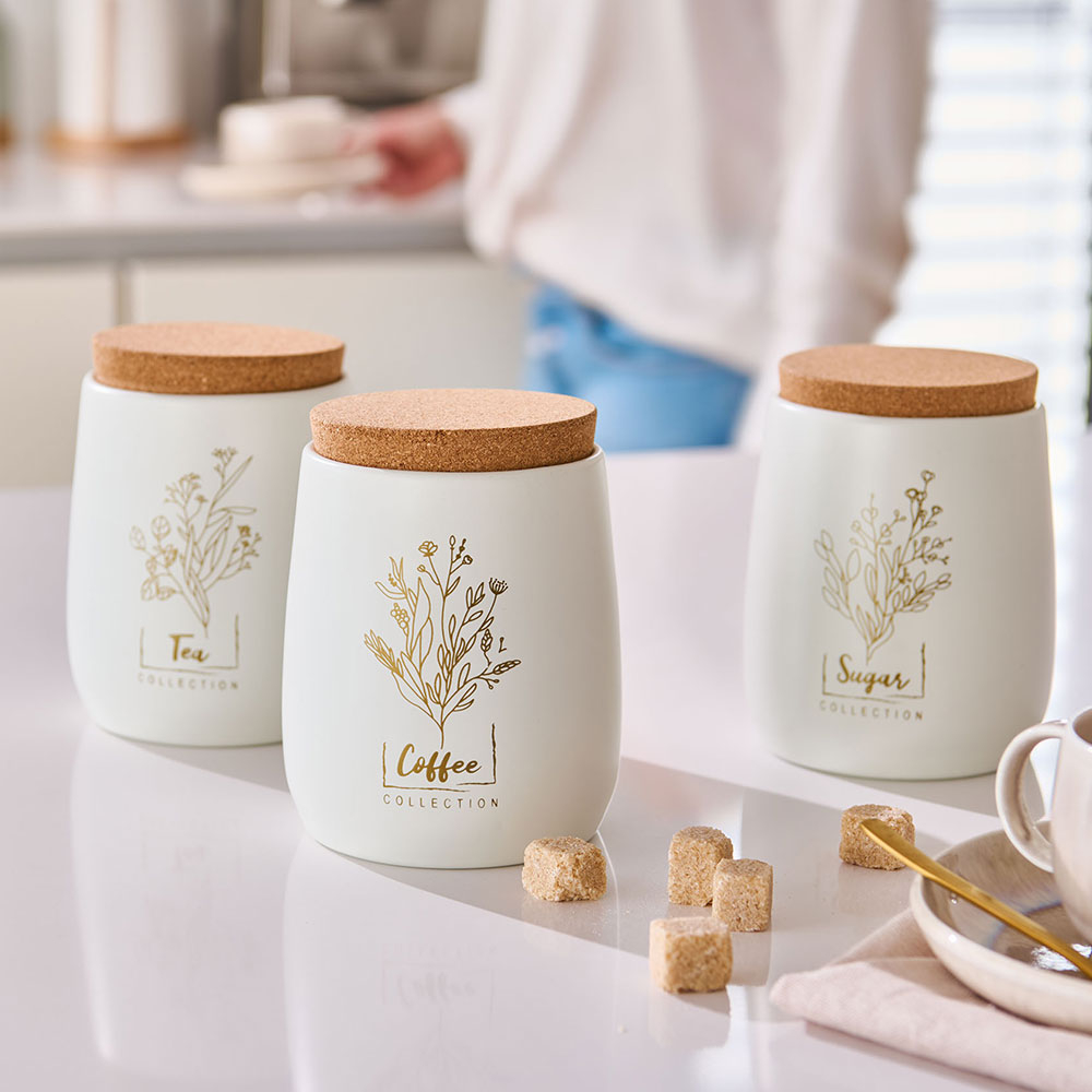 Δοχείο για τον καφέ με vintage ύφος. Είναι κατασκευασμένο από μεταλλικό υλικό σε λευκό χρώμα με λεπτομέρειες στο χρώμα της ώχρας. Το καπάκι είναι από φελλό σε μπεζ χρώμα. Έχει χωρητικότητα 750ml. Συνδυάστε το με τα υπόλοιπα είδη της ίδιας συλλογής για ένα ολοκληρωμένο αποτέλεσμα στο χώρο σας.