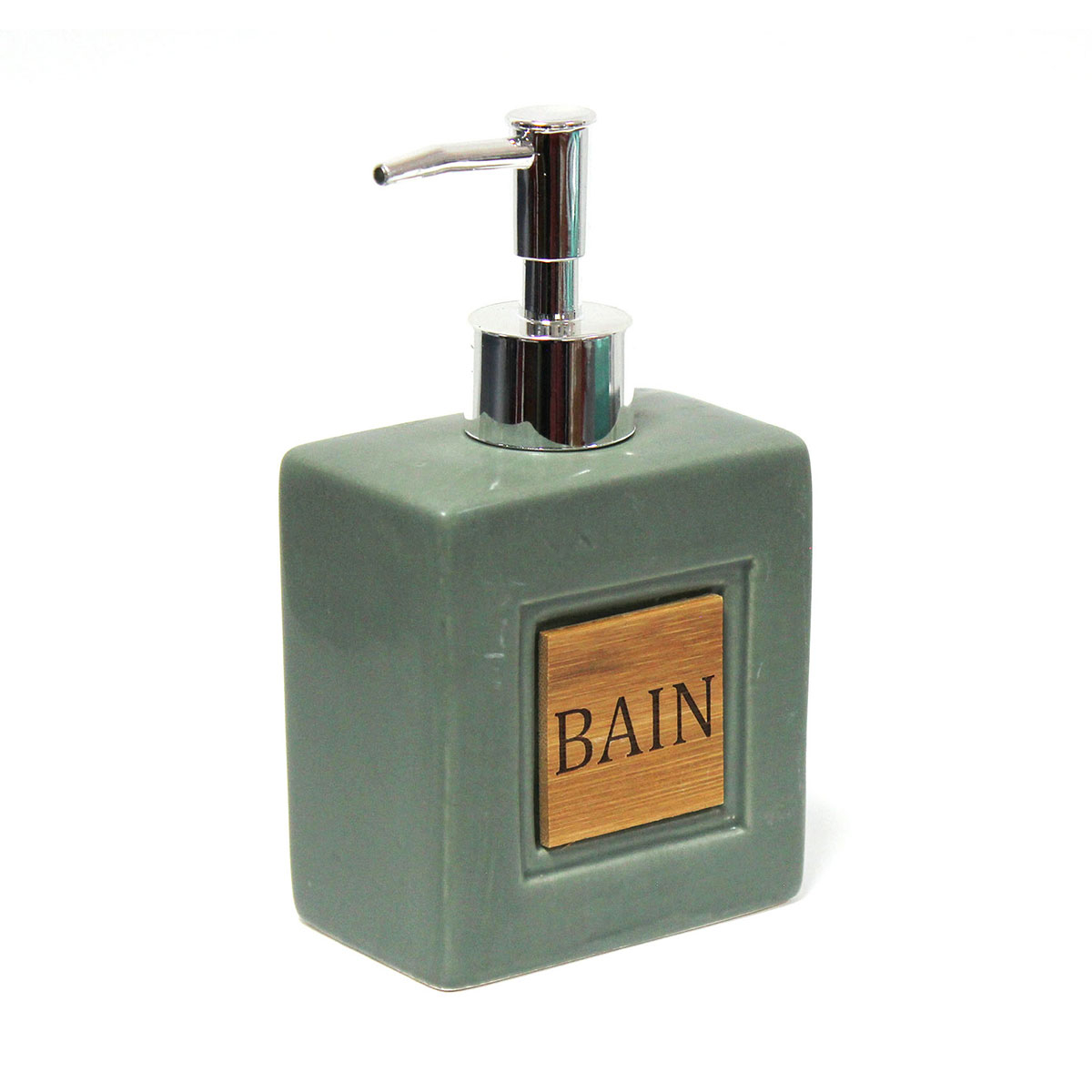 Δοχείο κρεμοσάπουνου σε βεραμάν χρώμα με μοντέρνο σχεδιασμό. Είναι κατασκευασμένο από κεραμικό υλικό με μπεζ bamboo λεπτομέρεια. Ιδανικό ντισπένσερ που θα ταιριάξει σε κάθε μπάνιο. Συνδυάστε το με τα υπόλοιπα προϊόντα της σειράς για ολοκληρωμένο αποτέλεσμα.