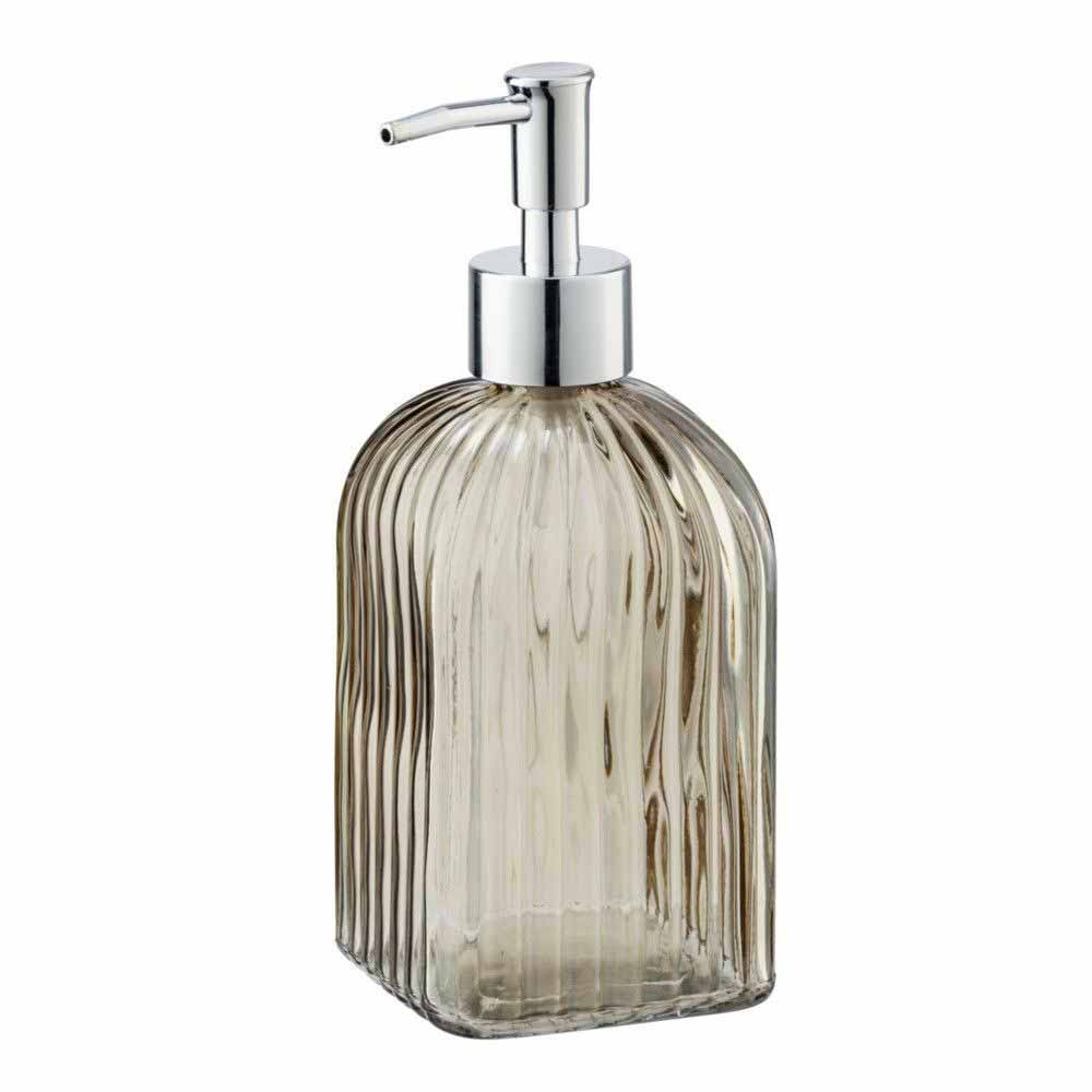 Δοχείο κρεμοσάπουνου από τη συλλογή Vetro της γερμανικής εταιρείας Wenko. Είναι γυάλινο με ανάγλυφο σχέδιο και καφέ χρώμα. Έχει χωρητικότητα 520ml. Συνδυάστε το με το ποτήρι για οδοντόβουρτσες για να ολοκληρώσετε το σετ.