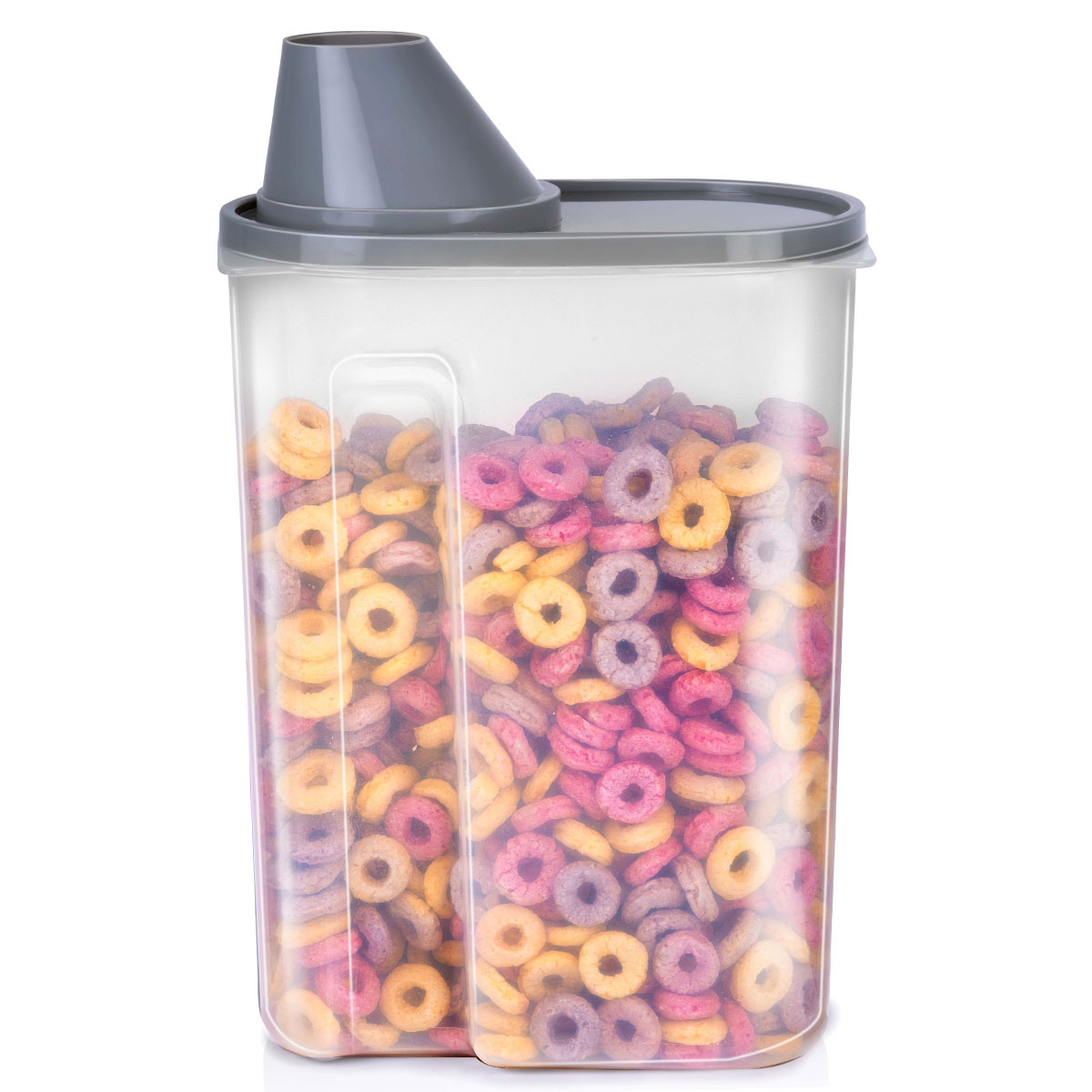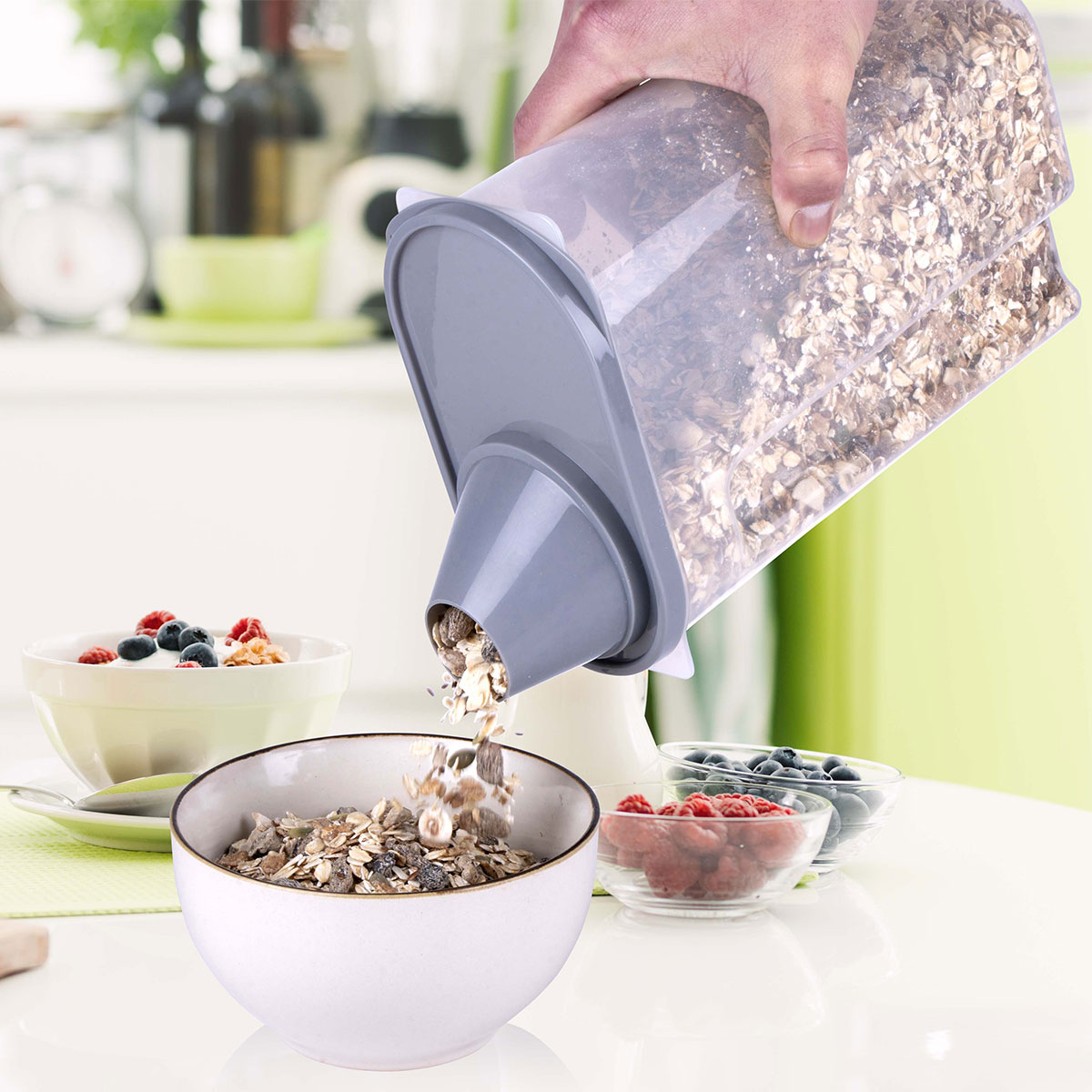 Δοχείο τροφίμων με καπάκι, από την εταιρεία Alpina. Είναι κατασκευασμένο από πλαστικό υλικό σε γκρι χρώμα και διαθέτει δοσομετρητή για να υπολογίζετε την ποσότητα που επιθυμείτε. Μπορείτε να τοποθετήσετε μέσα ρύζι, δημητριακά, όσπρια ή ότι άλλο επιθυμείτε. Χωρητικότητα: 2.4lt.