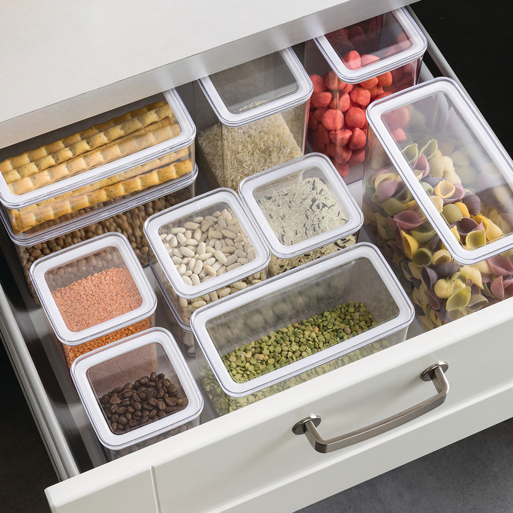 Δοχείο για τρόφιμα χωρητικότητας 3000 ml. Είναι κατασκευασμένο από πλαστικό υλικό, έχει καπάκι που κλείνει αεροστεγώς και είναι διάφανο ώστε να σας επιτρέπει να βλέπετε το περιεχόμενο όταν το τοποθετείτε σε ένα συρτάρι. Ιδανικό για να αποθηκεύσετε ζυμαρικά, όσπρια, ξηρούς καρπούς ακόμα και υγρά αφού το αεροστεγές κλείσιμο δεν επιτρέπει να τρέξει καθόλου υγρό.