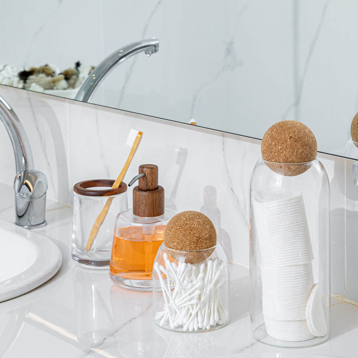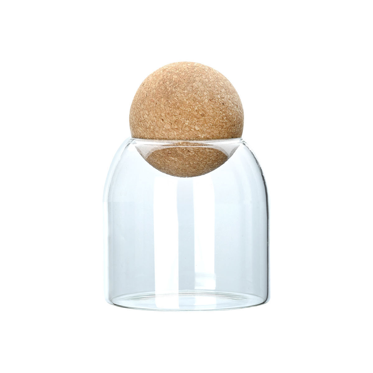 Δοχείο τροφίμων από την εταιρεία εstia σε διάφανο χρώμα με μίνιμαλ σχεδιασμό. Είναι κατασκευασμένο από γυαλί, με σφαιρικό καπάκι από φελλό . Ιδανικό δοχείο αποθήκευσης τροφίμων για την κουζίνα σας. Χωρητικότητα 450ml.