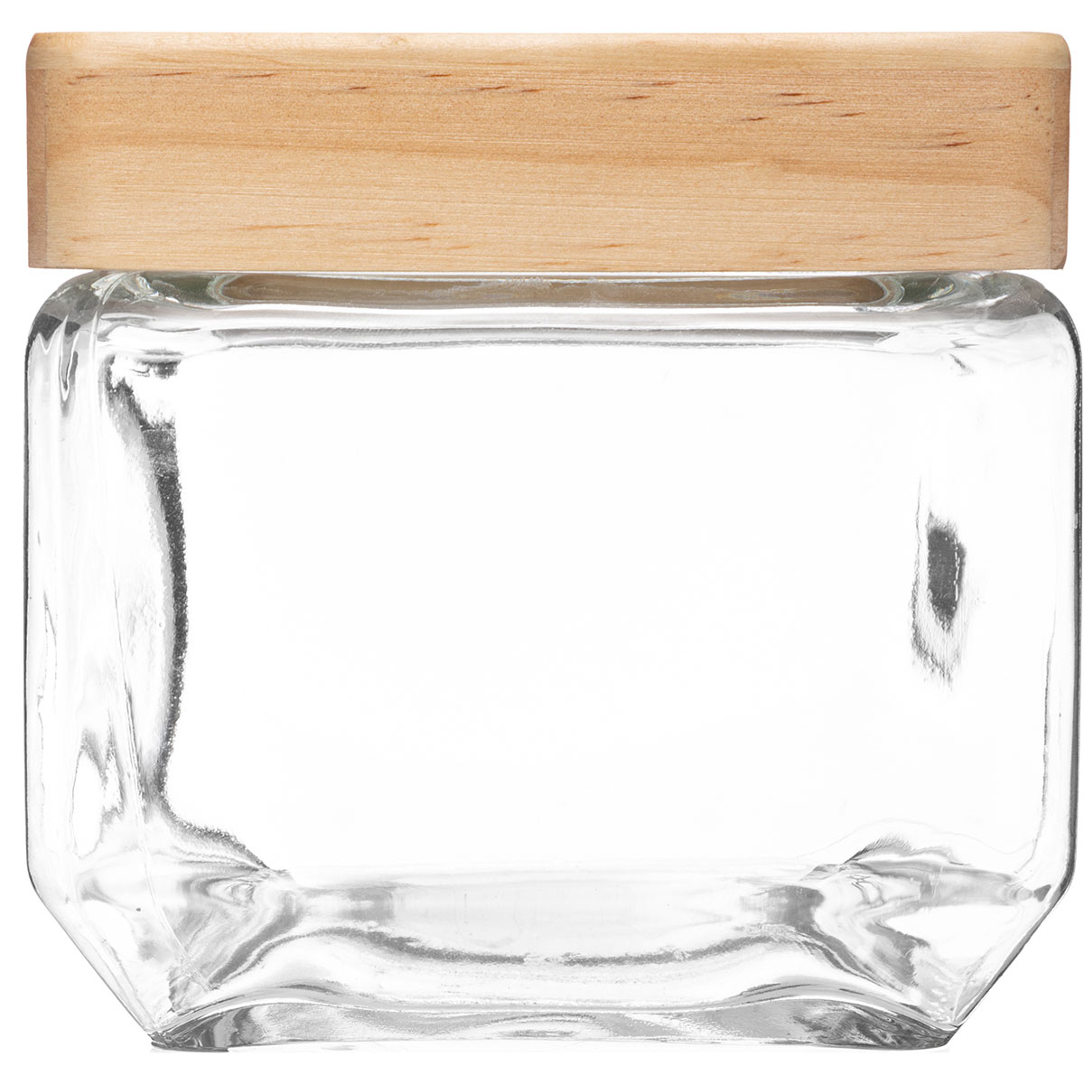 Βάζο κουζίνας σε διάφανο χρώμα και καπάκι σε φυσικό χρώμα του ξύλου. Κατασκευασμένο από γυλαί και διαθέτει ξύλινο καπάκι. Χωρητικότητα 850ml.