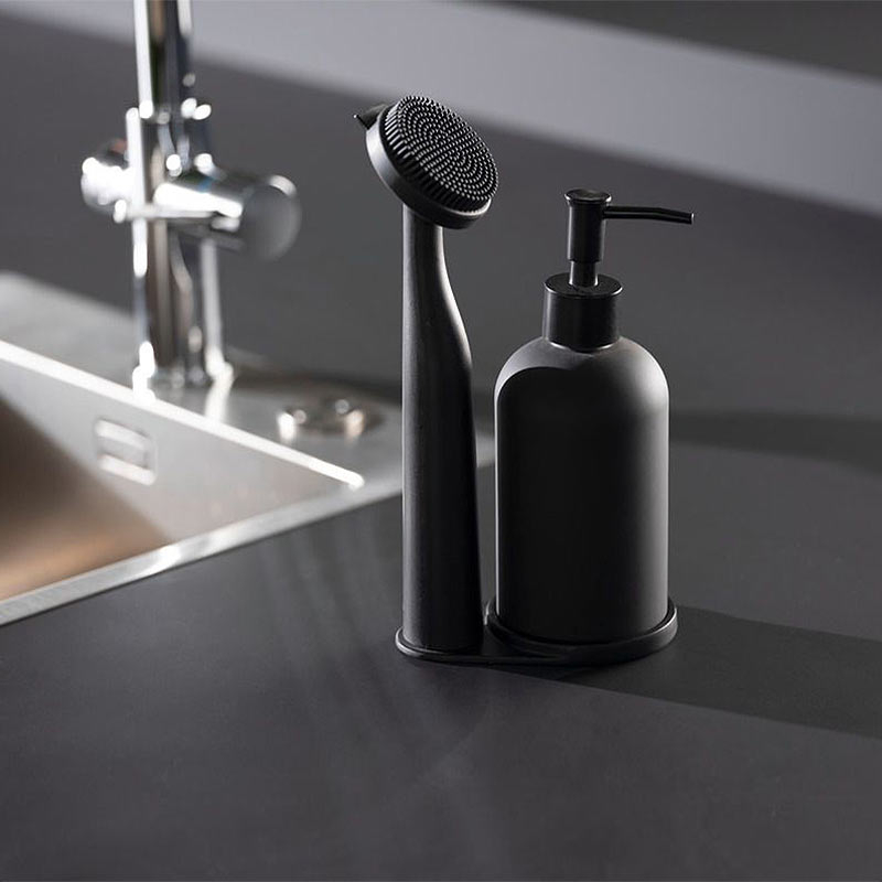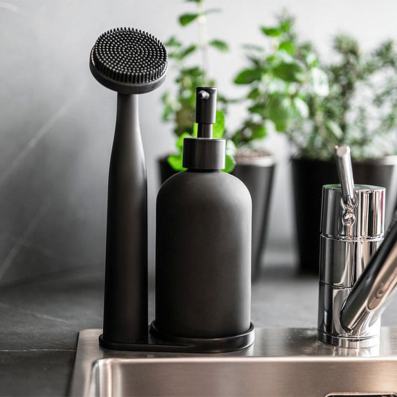 Δοχείο υγρού πιάτων και βούρτσα καθαρισμού σε μαύρο χρώμα από την γερμανική εταιρεία Wenko. Το σετ περιλαμβάνει 1 γυάλινο ντισπένσερ για υγρό πιάτων με χωρητικότητα 400ml, 1 πλαστική βούρτσα καθαρισμού για πιάτα που δεν χαράζει και βάση από Polyresin. Ιδανικό σετ για να έχετε πάντα οργανωμένη και τακτοποιημένη την κουζίνα σας.