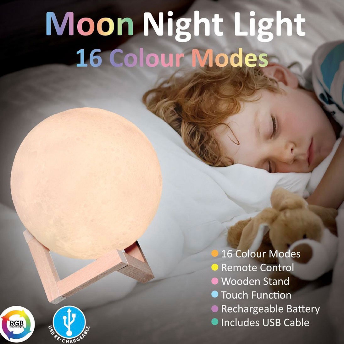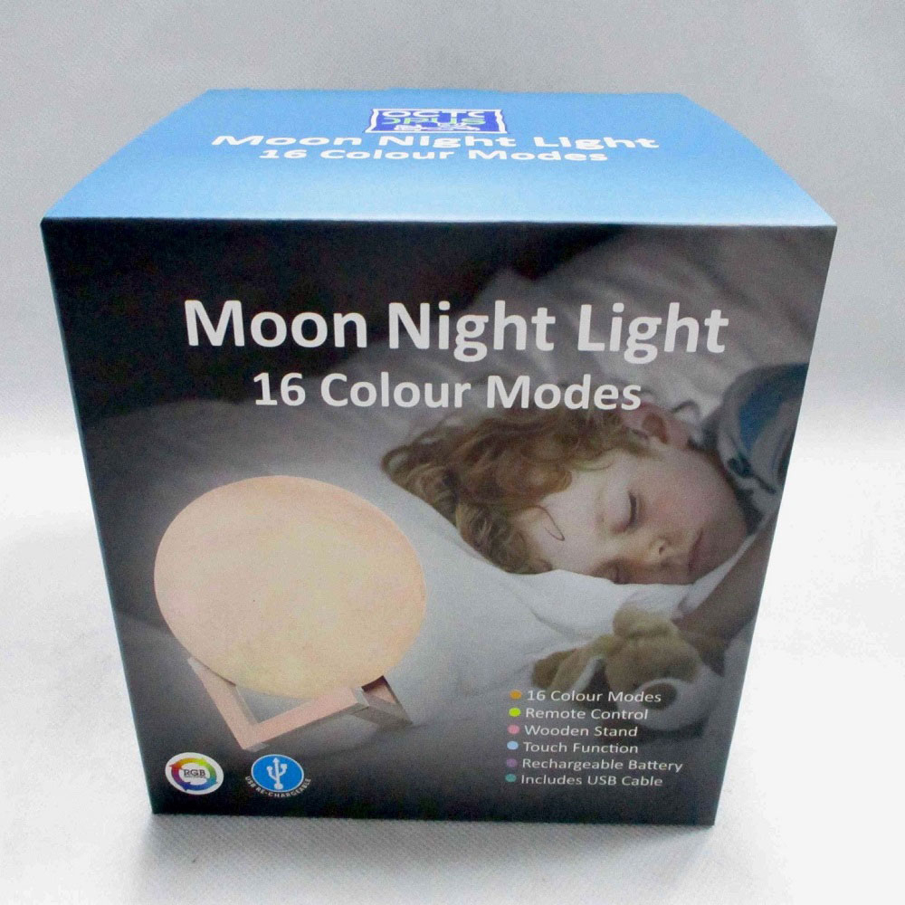 Διακοσμητικό πορτατίφ με σχήμα φεγγάρι από την εταιρεία Octopus με λειτουργία αφής. Είναι κατασκευασμένο από ασφαλές πλαστικό υλικό το οποίο δεν θερμαίνεται και διαθέτει ξύλινη βάση. Μπορείτε να ρυθμίσετε την ένταση του φωτός και το χρώμα του ανάμεσα σε 16 RGB χρώματα. Χρησιμοποιείται και χωρίς την βάση του. Περιλαμβάνεται καλώδιο φόρτισης USB και τηλεχειριστήριο για την ρύθμιση του χρώματος και της φωτεινότητας. Χρόνος φόρτισης περίπου 2 ώρες και αυτονομία περίπου 8 ώρες.
