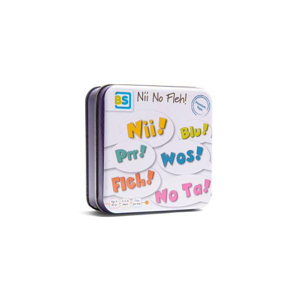 Επιτραπέζιο παιχνίδι από την εταιρία Bs Toys. Κατασκευασμένο από χαρτόνι, είναι κατάλληλο για ηλικίες 6+ ετών. Ένα μπερδεμένο παιχνίδι με κάρτες σε μία γλώσσα που κυριολεκτικά δεν υπάρχει! Θα πείτε ‘fleh’ , ‘ni’ ή ‘wos- wos’? Αν κάνετε ένα λάθος πρέπει να πάρετε όλες τις κάρτες από το κέντρο. Ποιος θα προλάβει να ξεφορτωθεί πρώτος όλες τις κάρτες και να κερδίσει?