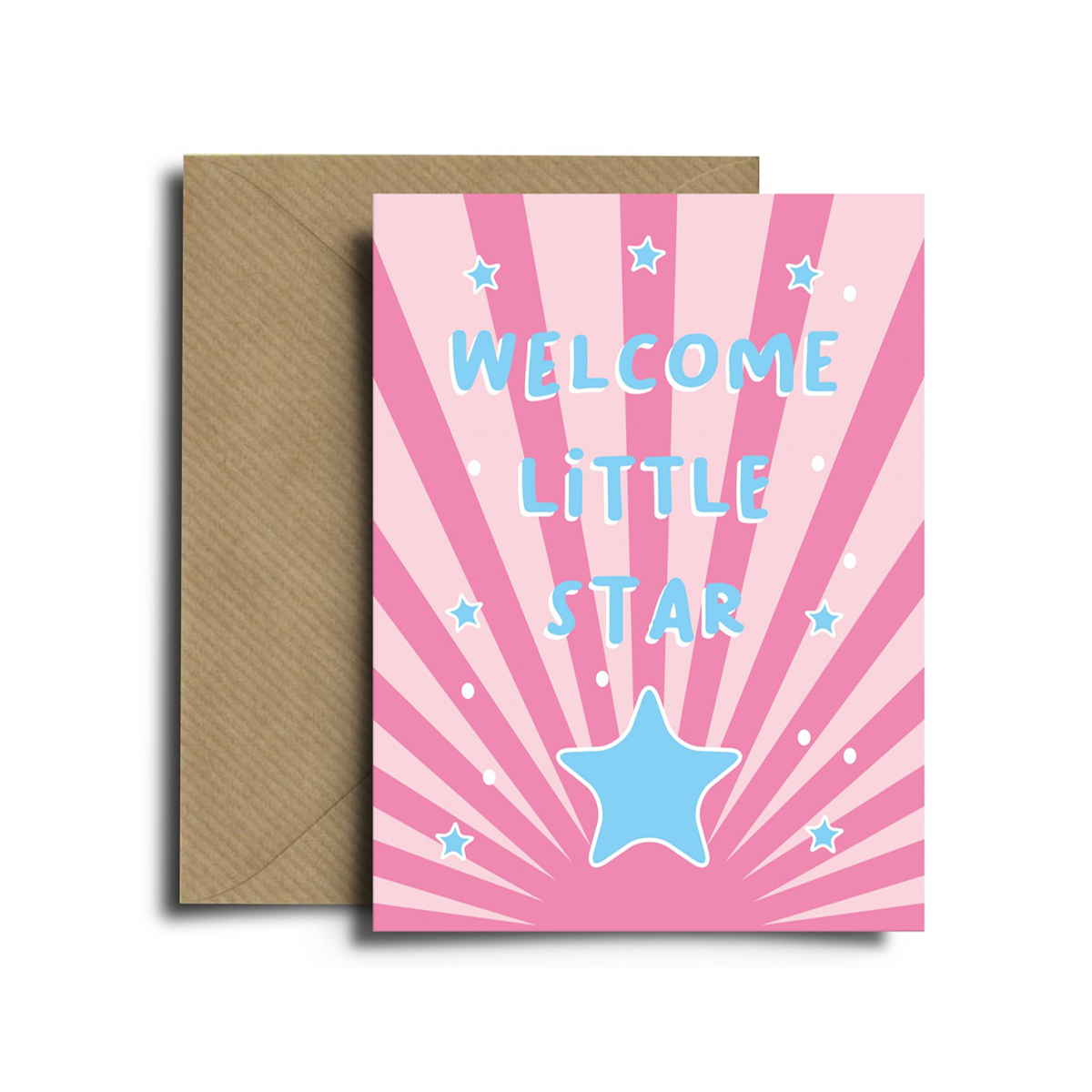 Ευχετήρια κάρτα γέννησης από την εταιρεία Spread The Magic. Είναι τυπωμένη σε υψηλής ποιότητας οικολογικό παχύ χαρτί με πιστοποίηση FSC. Έχει ροζ-φούξια φόντο με γαλάζιες λεπτομέρειες και αστεράκια στο σχέδιο. Επίσης, έχει στοιχεία με βερνίκι UV. Είναι διπλή, δηλαδή ανοίγει σαν βιβλίο και εσωτερικά έχει χώρο για χειρόγραφες ευχές. Περιλαμβάνει ανακυκλωμένο φάκελο κραφτ. Ιδανική κάρτα για να δώσετε στο αγαπημένο σας πρόσωπο.
