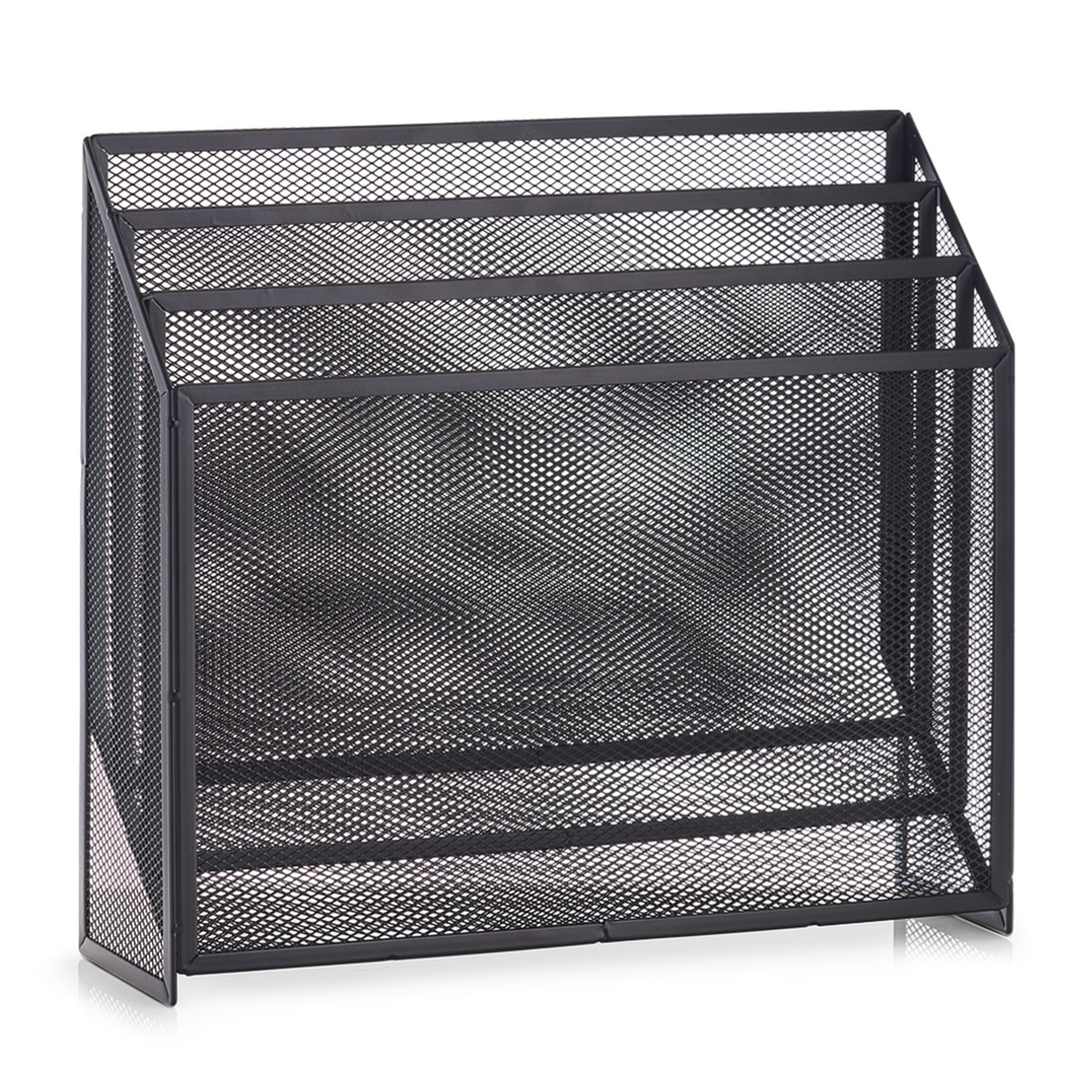 Θήκη για εφημερίδες και περιοδικά ώστε να παραμένει οργανωμένος ο χώρος σας. Είναι κατασκευασμένη από μεταλλικό υλικό με ηλεκτροστατική βαφή πούδρας σε ανθρακί χρώμα με διάτρητο σχεδιασμό τύπου πλέγματος που προσφέρει καλή ορατότητα και εύκολη πρόσβαση στα αντικείμενα. Ιδανική για το γραφείο, το σαλόνι, το υπνοδωμάτιο και όπου αλλού έχετε περιοδικά για τακτοποίηση.