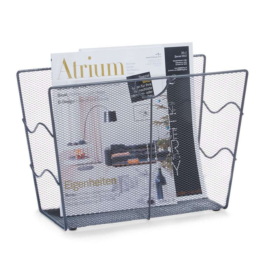 Θήκη για εφημερίδες και περιοδικά ώστε να παραμένει οργανωμένος ο χώρος σας. Είναι κατασκευασμένη από μεταλλικό υλικό σε ανθρακί χρώμα με διάτρητο σχεδιασμό τύπου πλέγματος και προσφέρει καλή ορατότητα και εύκολη πρόσβαση στα αντικείμενα. Ιδανική για το γραφείο, το σαλόνι, το υπνοδωμάτιο και όπου αλλού έχετε περιοδικά.