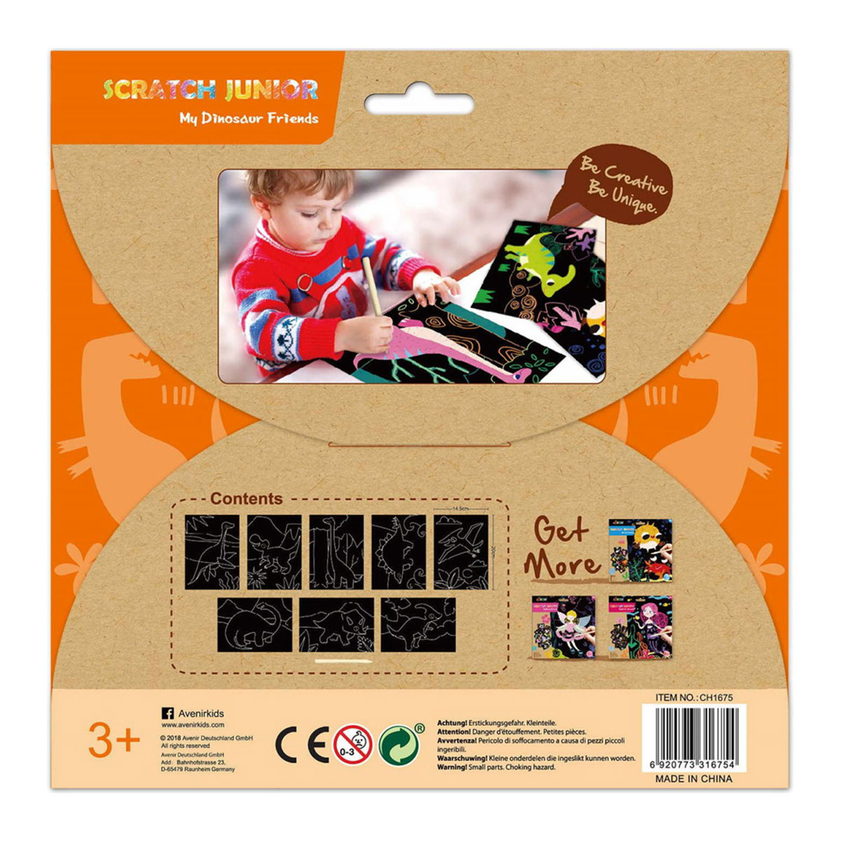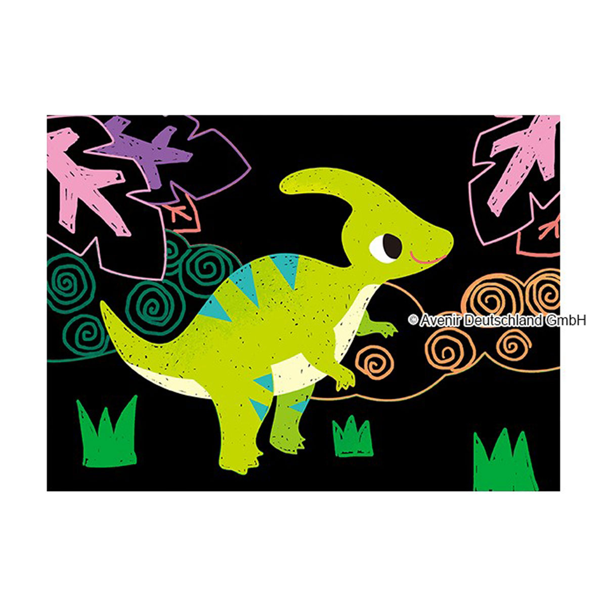 Μοναδική ζωγραφική σκρατς από την εταιρία Avenir. Η συσκευασία διαθέτει 8 διαφορετικά φύλλα ζωγραφικής σκρατς με δεινόσαυρους. Απλά ξύστε την μαύρη επιφάνεια με το ξυλάκι που διαθέτει η συσκευασία για να αποκαλύψετε έντονα χρώματα και να δημιουργήσετε ό,τι μοτίβο επιθυμείτε. Είναι εύκολο στην χρήση και διασκεδαστικό. Κατάλληλο για ηλικίες 3+ ετών.