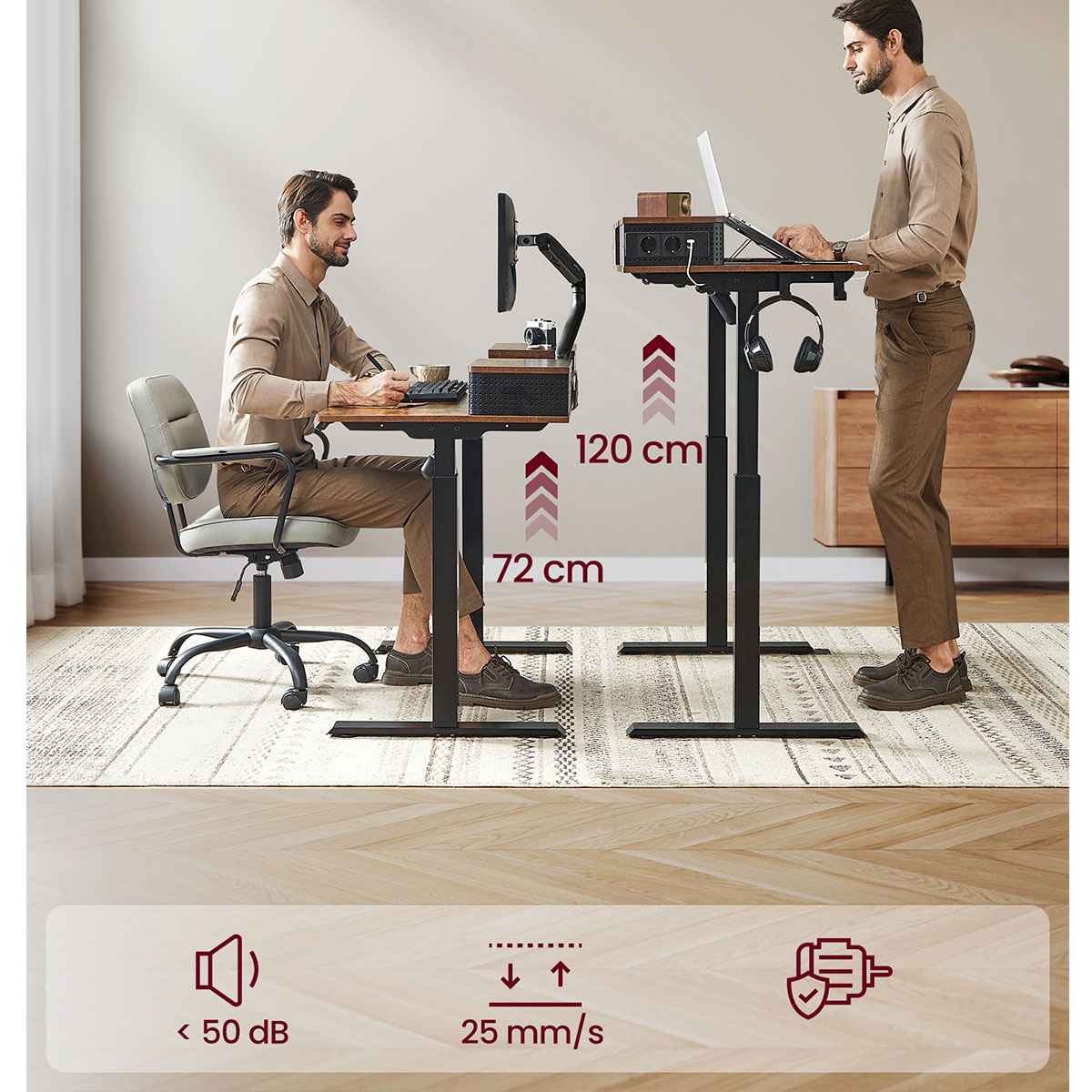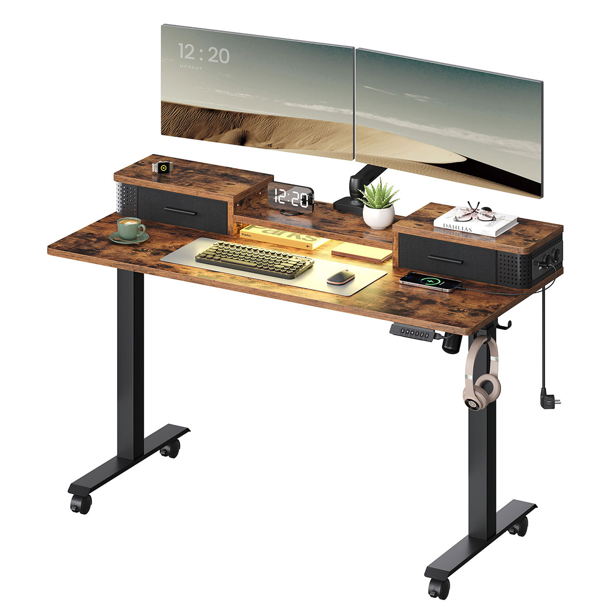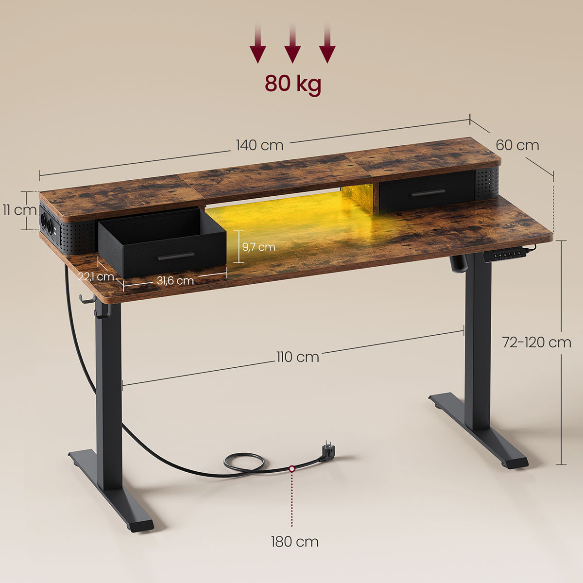 | VasagleΗλεκτρικό Γραφείο Με Ενσωματωμένες Πρίζες (140x60x72/120) & Ρυθμιζόμενο Ύψος Vasagle LSD184KD02
