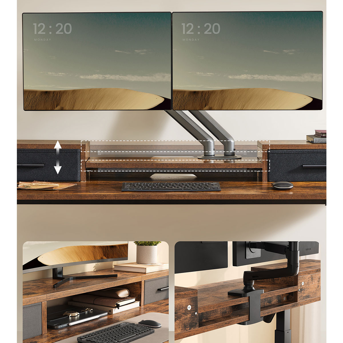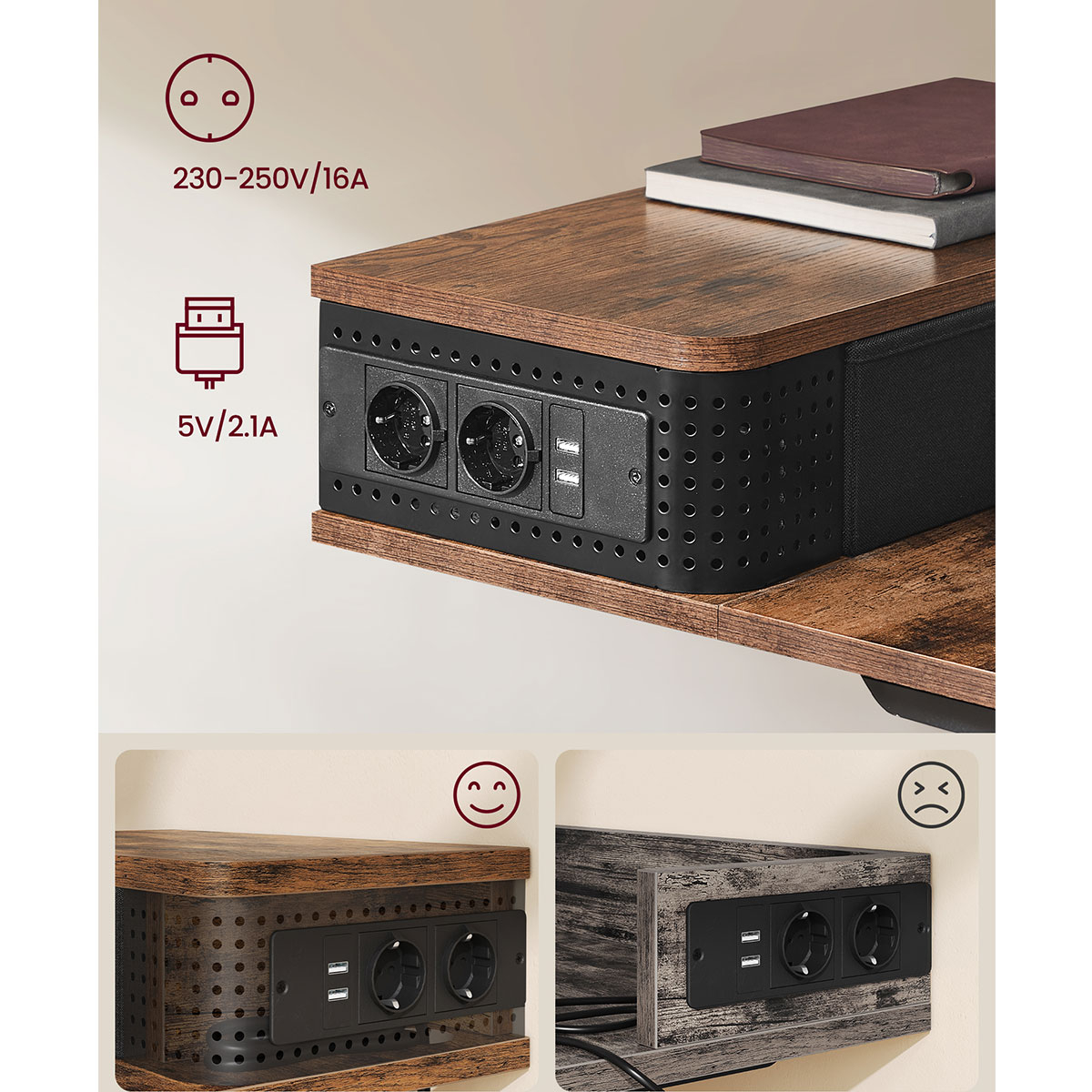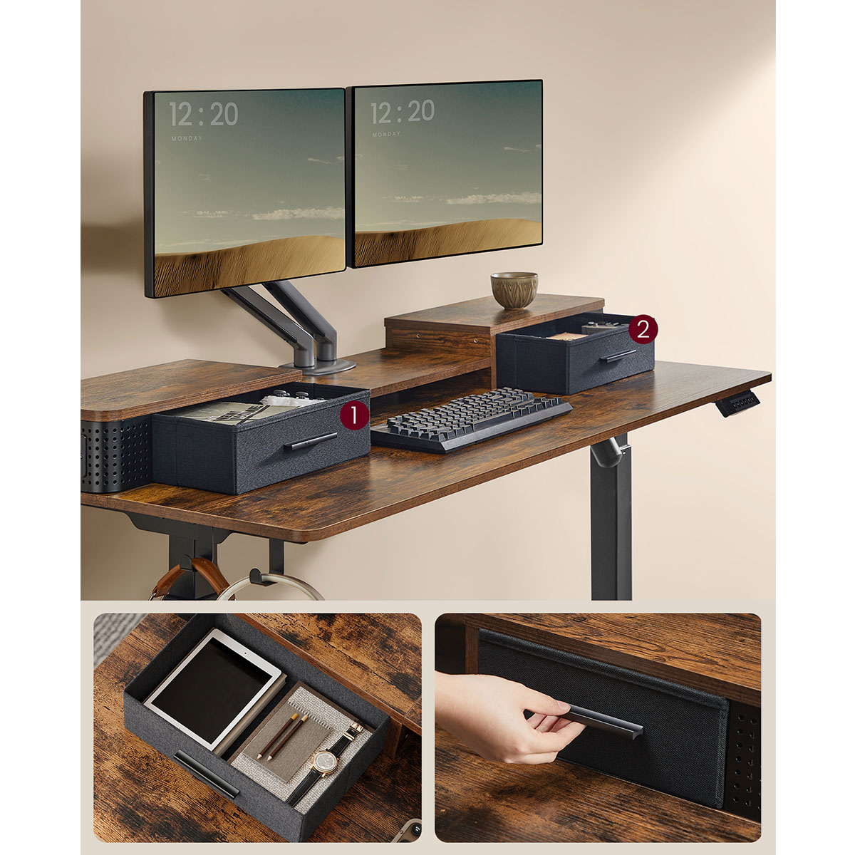 | VasagleΗλεκτρικό Γραφείο Με Ενσωματωμένες Πρίζες (140x60x72/120) & Ρυθμιζόμενο Ύψος Vasagle LSD184KD02