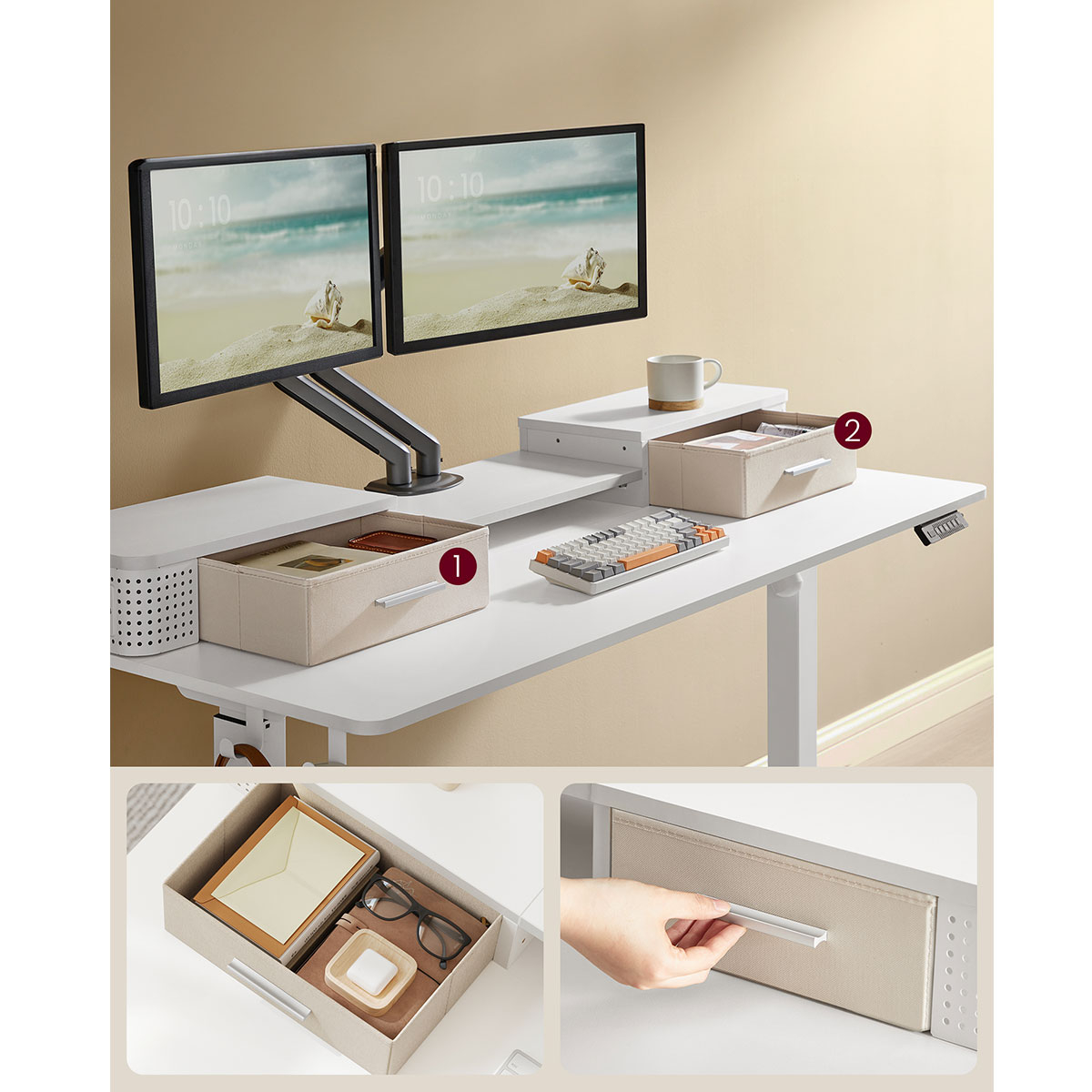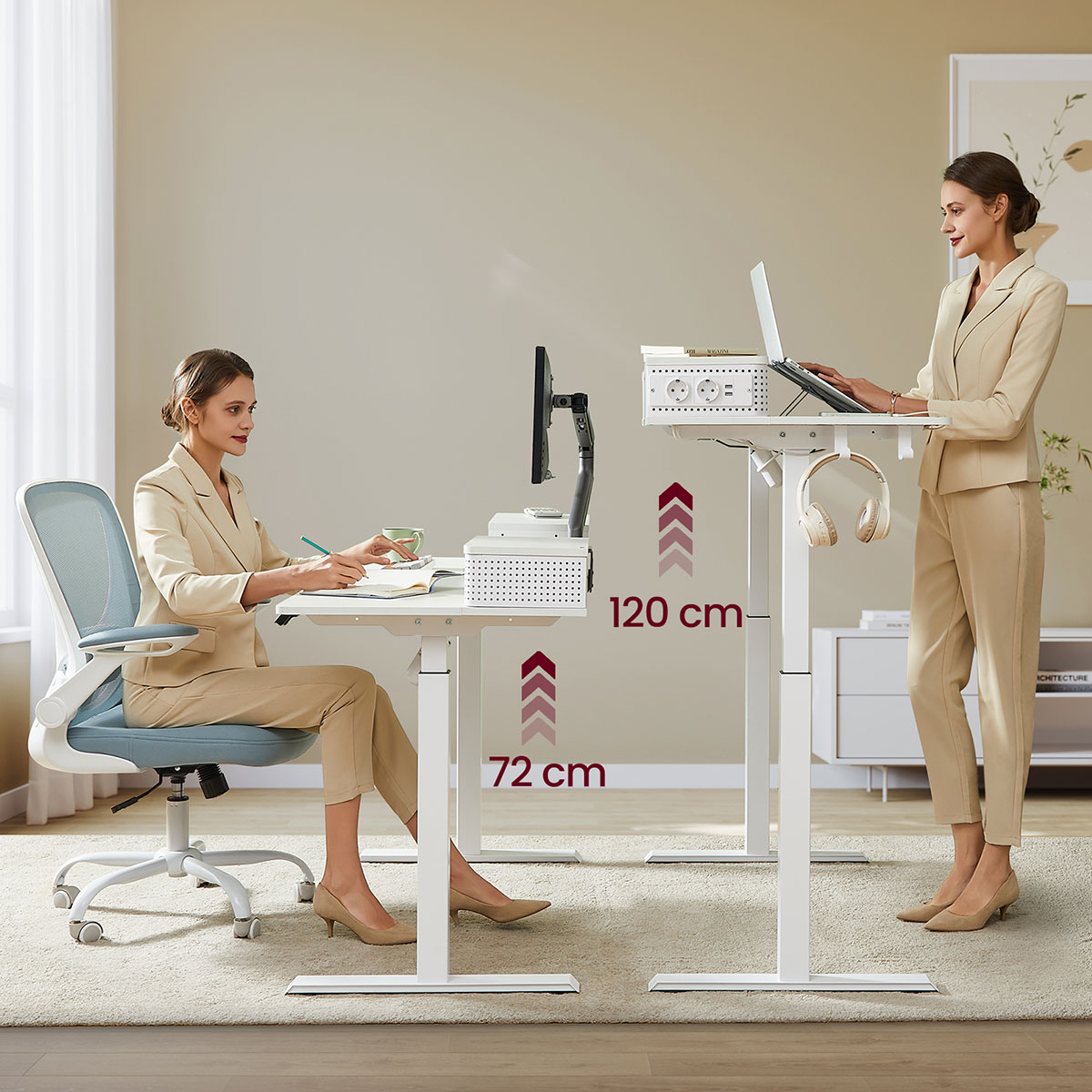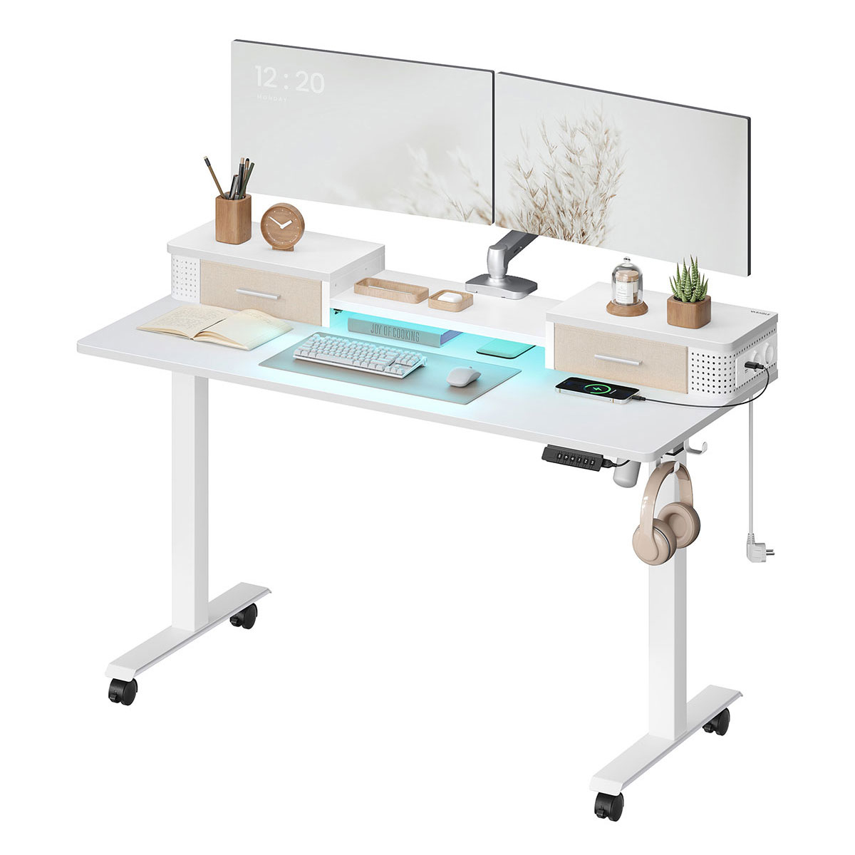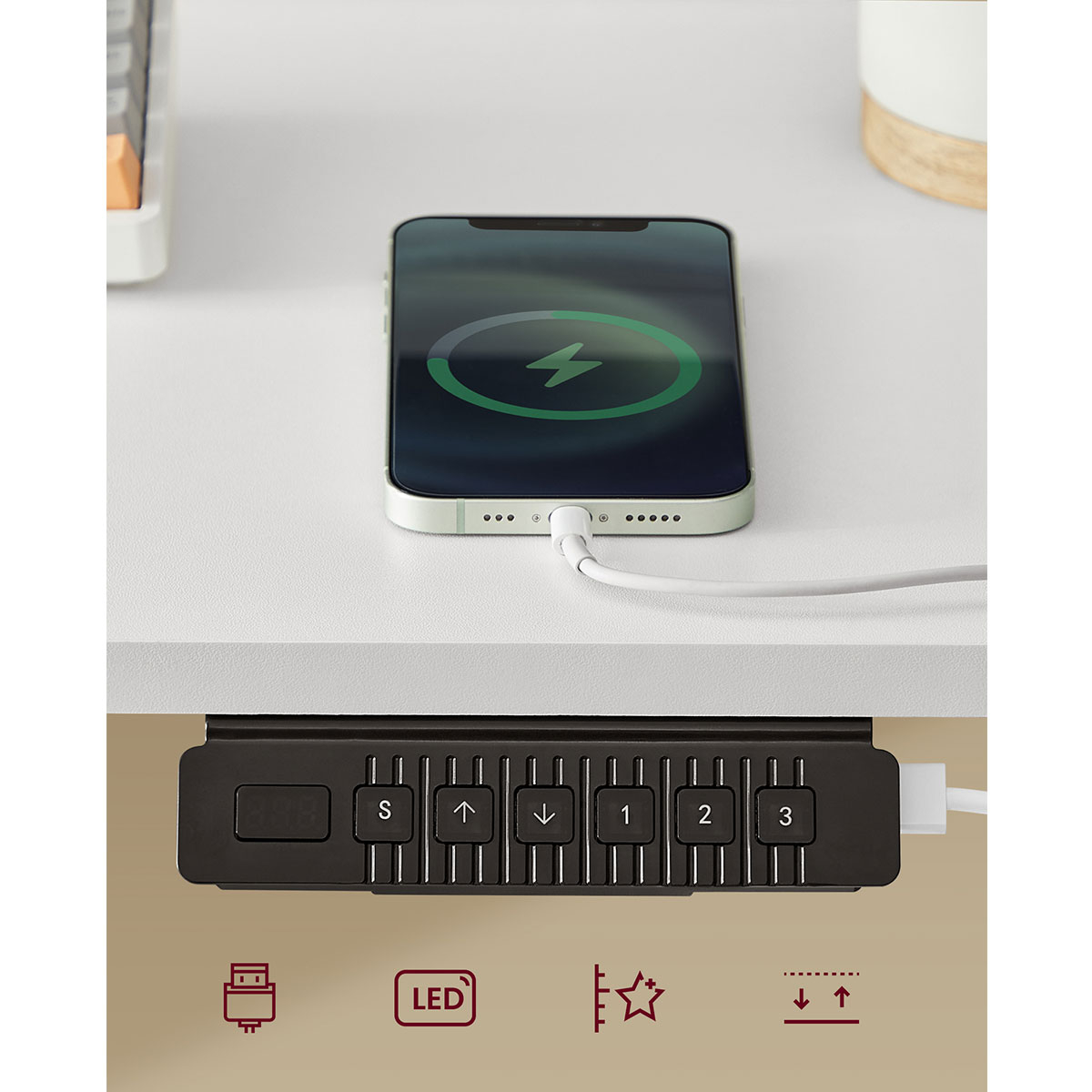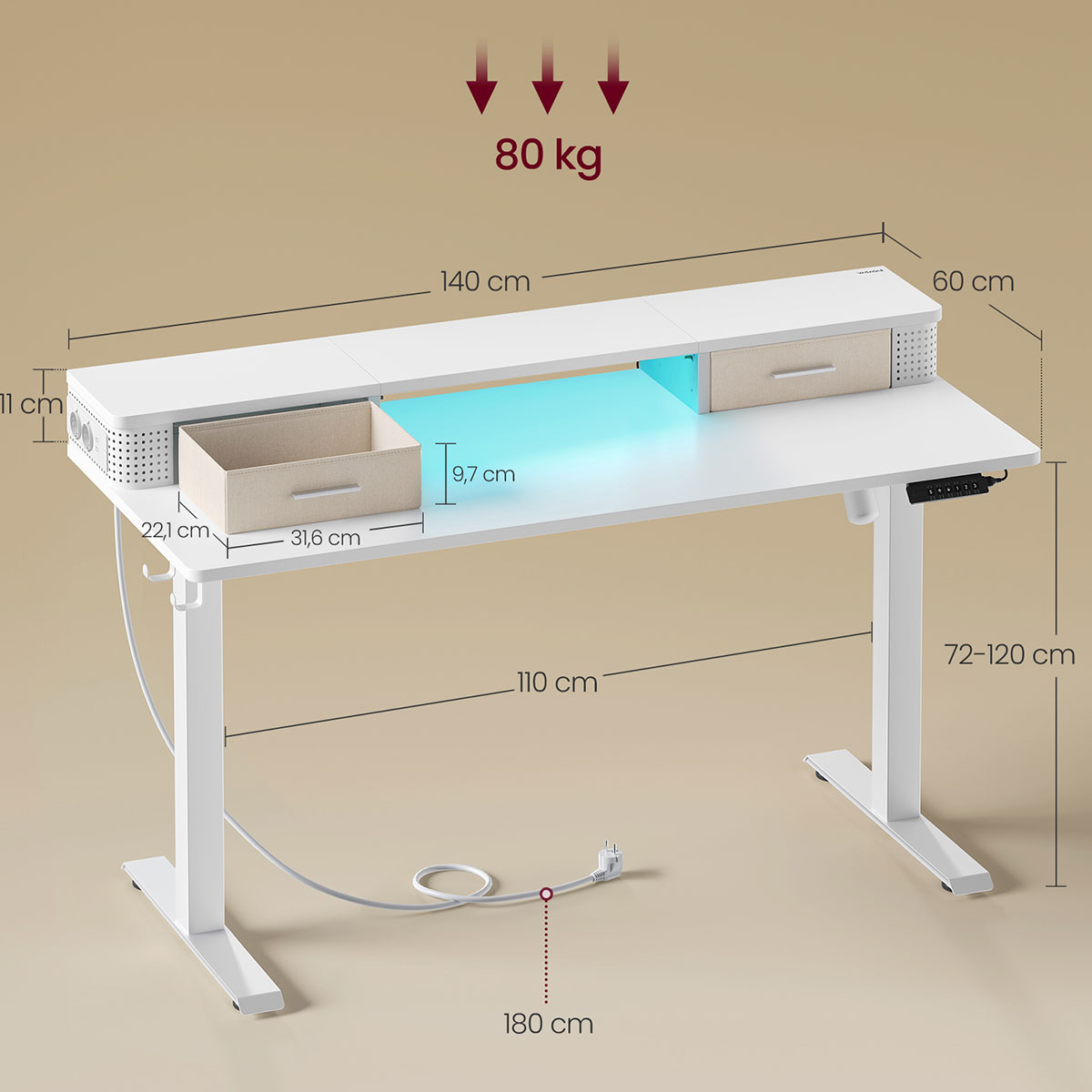 | VasagleΗλεκτρικό Γραφείο Με Ενσωματωμένες Πρίζες (140x60x72/120) & Ρυθμιζόμενο Ύψος Vasagle LSD184WZ01