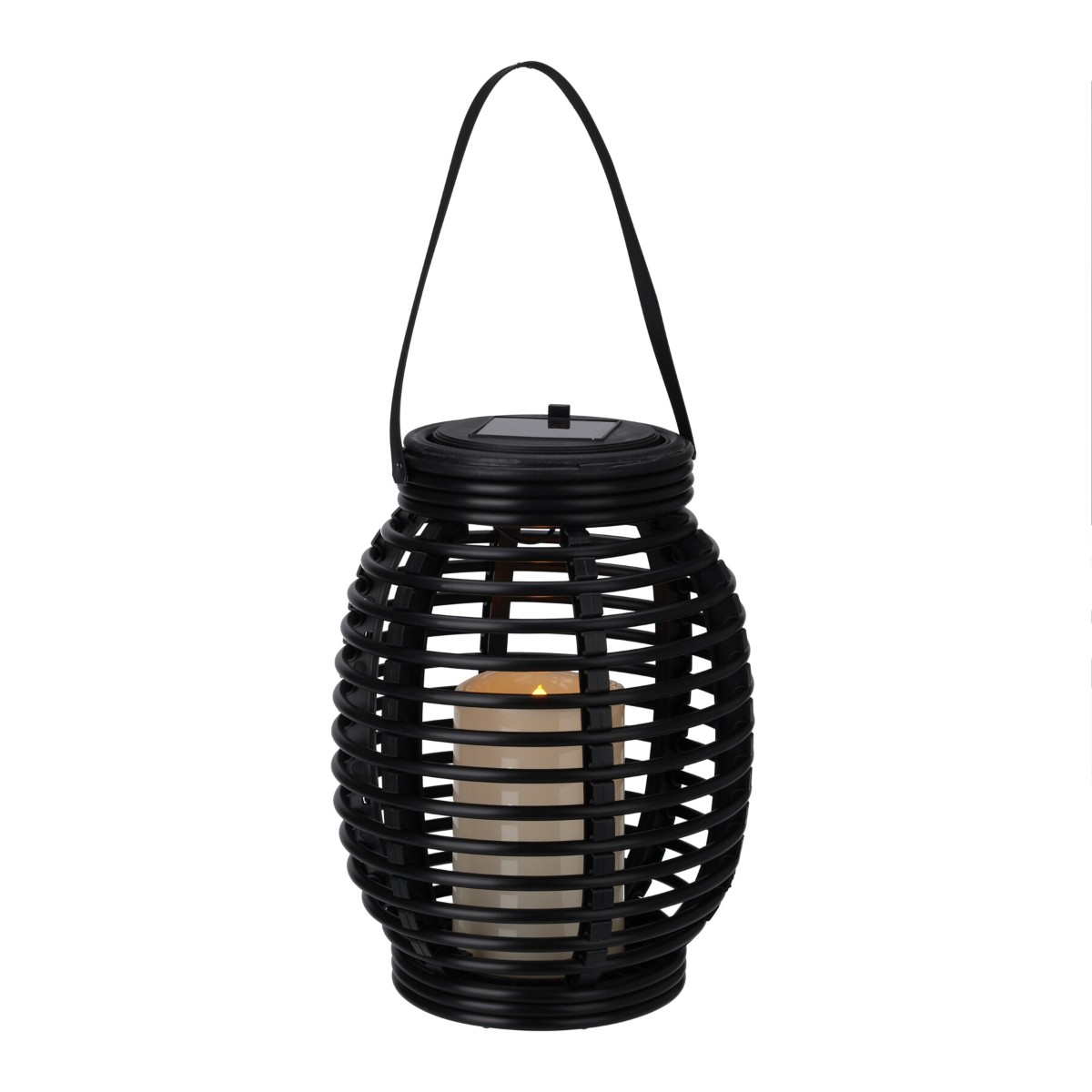 Ηλιακό φανάρι με μοντέρνο σχεδιασμό και κατασκευασμένο από πλαστικό υλικό σε μαύρο χρώμα. Διαθέτει λαβή για να το κρεμάσετε αν επιθυμείτε και διακόπτη on/off. Έχει 1 λάμπα led με όψη κεριού που παράγει θερμό λευκό φως και τροφοδοτείται από 1 επαναφορτιζόμενη μπαταρία AA. Κατά τη διάρκεια της ημέρας, η ηλιακή ενέργεια επαναφορτίζει την μπαταρία μέσω του ενσωματωμένου πάνελ. Το μοντέρνο στυλ του θα διακοσμήσει και θα φωτίσει τον κήπο και τους εξωτερικούς χώρους του σπιτιού ή του εξοχικού σας.
