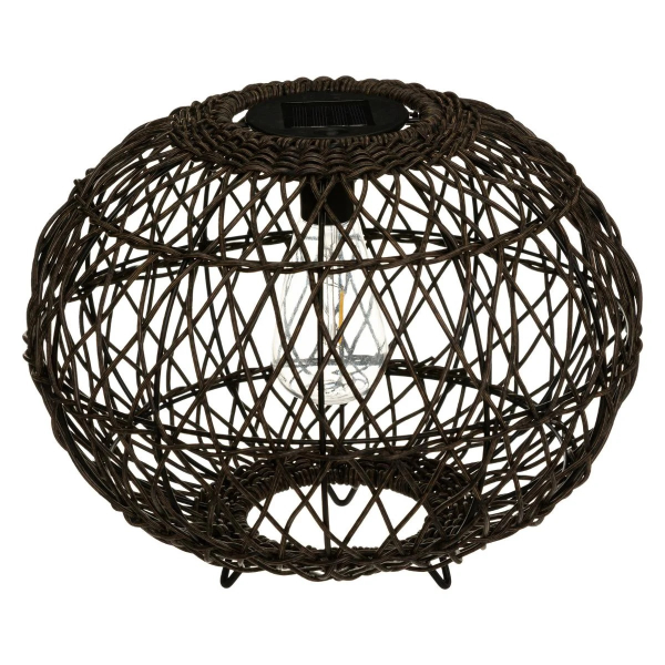Ηλιακό φωτιστικό εξωτερικού χώρου κατασκευασμένο από πολυπροπυλένιο σε ψάθινη μορφή και μεταλλικά σημεία. Μπορεί να τοποθετηθεί στο δάπεδο ή να χρησιμοποιηθεί και ως επιτραπέζιο φωτιστικό. Έχει 1 λάμπα led με θερμό λευκό φως που τροφοδοτείται από μία επαναφορτιζόμενη μπαταρία AA LR6 χωρητικότητας 800mAh. Κατά τη διάρκεια της ημέρας, η ηλιακή ενέργεια επαναφορτίζει την εσωτερική μπαταρία μέσω του ενσωματωμένου πάνελ και το βράδυ ανάβει αυτόματα. Μετά από πλήρη φόρτιση έχει αυτονομία 8 ωρών. Το μοντέρνο του στυλ θα διακοσμήσει και θα φωτίσει τον κήπο και τους εξωτερικούς χώρους του σπιτιού ή του εξοχικού σας.