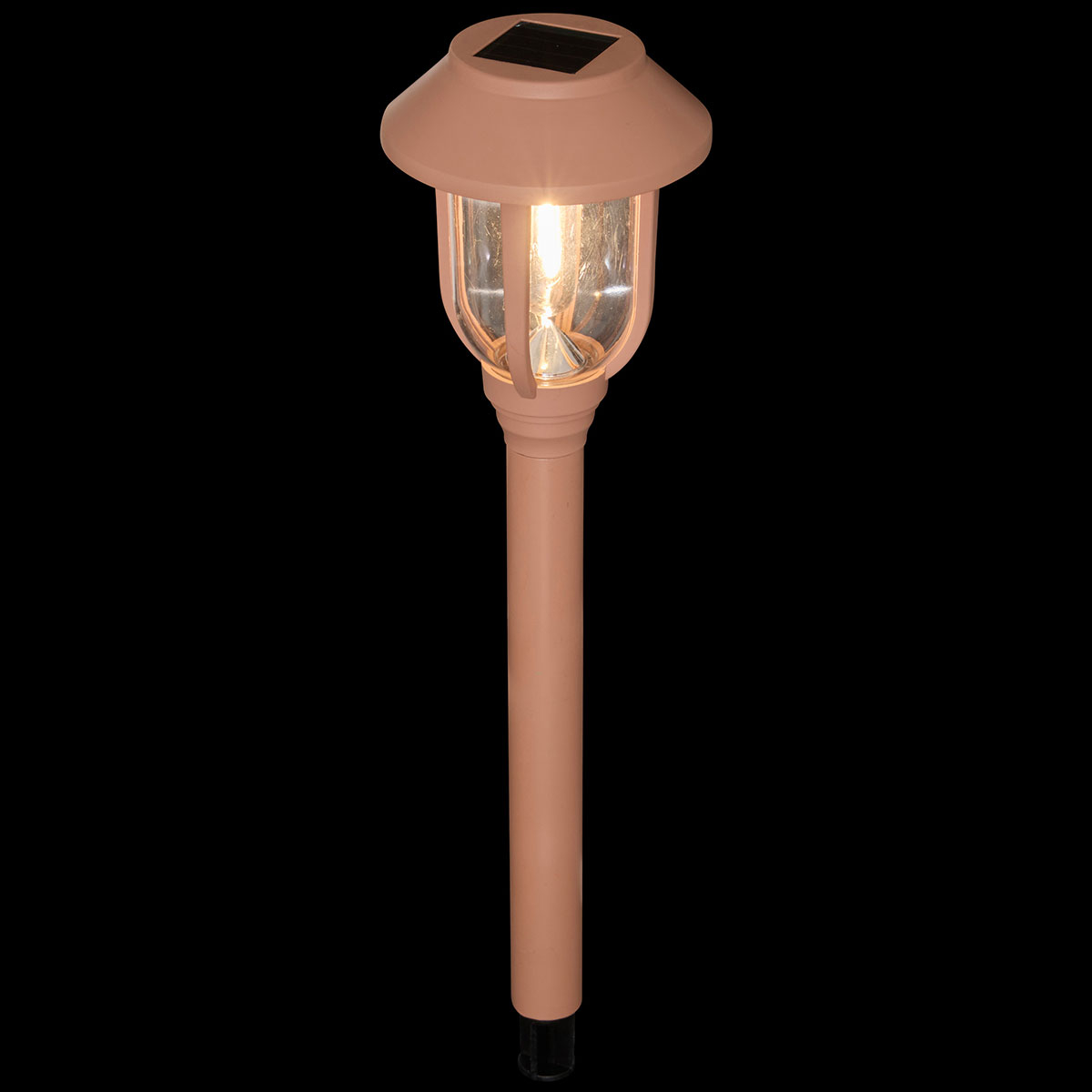 Ηλιακό φωτιστικό εξωτερικού χώρου - φαναράκι, κατασκευασμένο από πλαστικό υλικό σε ροζ χρώμα. Είναι καρφωτό, για να τοποθετείται εύκολα σε χώμα ή γλάστρα. Κατά τη διάρκεια της ημέρας η ηλιακή ενέργεια επαναφορτίζει την εσωτερική μπαταρία μέσω του ενσωματωμένου πάνελ και το βράδυ ανάβει αυτόματα. Μετά από πλήρη φόρτιση έχει αυτονομία 8 ωρών. Έχει θερμό λευκό φωτισμό και βαθμό στεγανότητας IP44. Θα διακοσμήσει με στυλ και θα φωτίσει τον κήπο και τους εξωτερικούς χώρους του σπιτιού ή του εξοχικού σας.