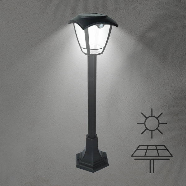 Ηλιακό φωτιστικό φανάρι με κολώνα από την εταιρεία Eurolamp. Είναι κατασκευασμένο από πλαστικό υλικό σε μαύρο χρώμα. ενσωματωμένη πλακέτα Led με ισχύ 6 Watt. Με τεχνολογία 3 CCT (Correlated Color Temperature) σας δίνει τη δυνατότητα να επιλέξετε ανάμεσα σε τρεις διαφορετικές θερμοκρασίες φωτισμού, 2700K (Θερμό)/4000K (Φυσικό)/6500K (Ψυχρό). Συνολική φωτεινότητα 400Lm. Κατά τη διάρκεια της ημέρας, η ηλιακή ενέργεια επαναφορτίζει την εσωτερική μπαταρία μέσω του ενσωματωμένου πάνελ. Έχει αισθητήρα κίνησης που ανάβει αυτόματα το φως μόλις εντοπίσει κίνηση. Διαθέτει προστασία από υγρασία και σκόνη με βαθμό στεγανότητας IP44. Εγγύηση 2 χρόνια. Μετά το πέρας της εγγύησης, ενδεχόμενες επισκευές πραγματοποιούνται κατόπιν επικοινωνίας με τo Spitishop. Tο προϊόν θα αποσταλεί στον επίσημο προμηθευτή, ο οποίος καθορίζει και το κόστος επισκευής. Θα διακοσμήσει και θα φωτίσει τον κήπο και τους εξωτερικούς χώρους του σπιτιού ή του εξοχικού σας.
