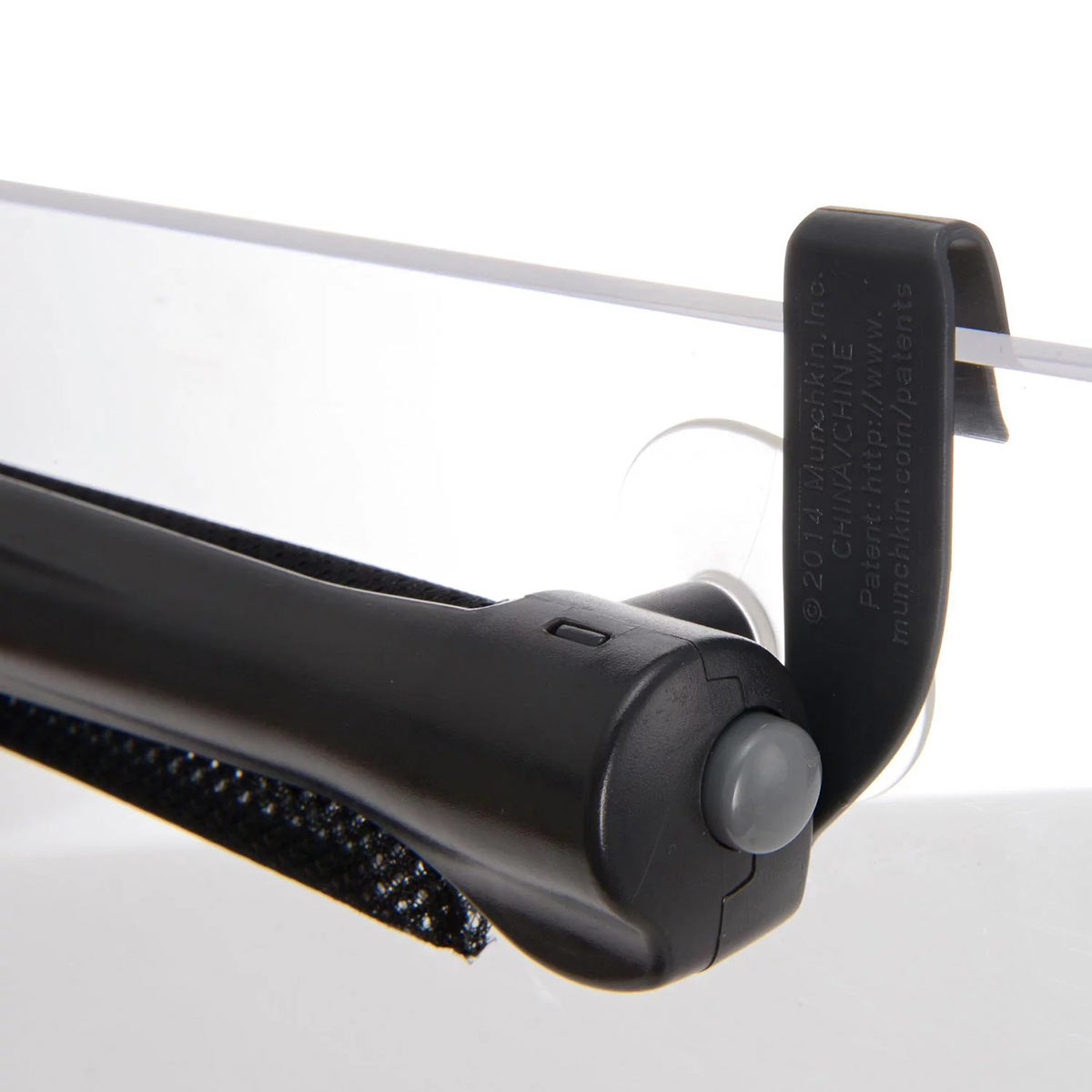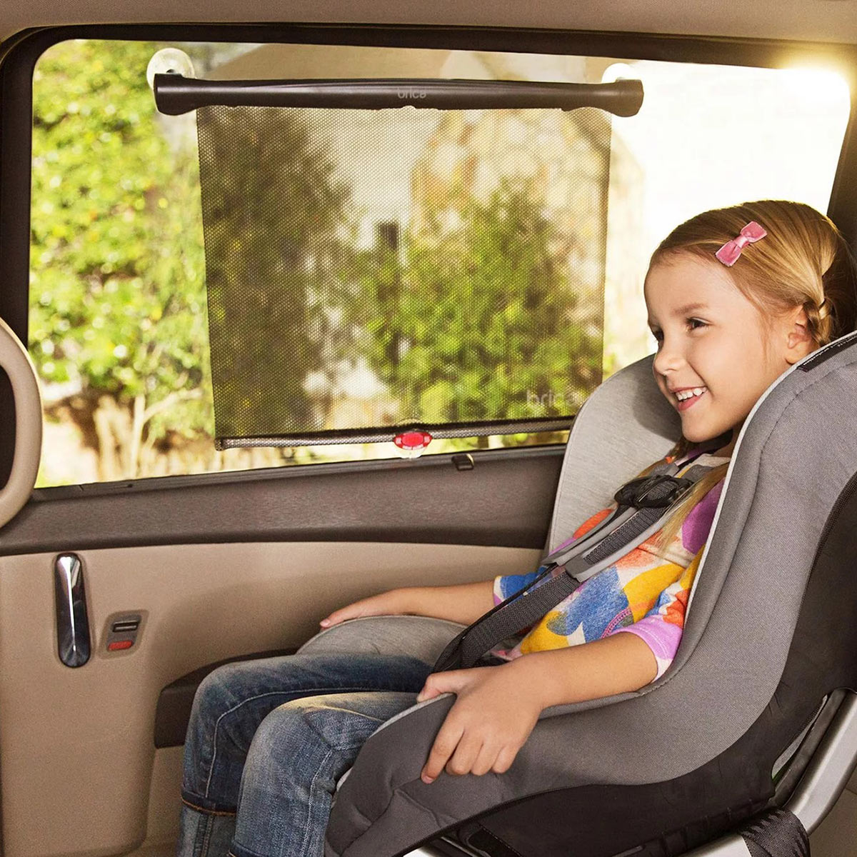Σκίαστρα σε ρολό για τα παράθυρα του αυτοκινήτου, σε μαύρο χρώμα από την εταιρεία Munchkin. Με υφασμάτινο πλέγμα Safe-View για να μπορεί το παιδί να βλέπει έξω από το παράθυρο. Χάρη στο πατενταρισμένο σύστημα White Hot®, αυτές οι ηλιοπροστασίες μπλοκάρουν πάνω από το 90% των επιβλαβών UV ακτίνων, ενώ υποδεικνύουν και πότε το αυτοκίνητο είναι πολύ ζεστό. Προστατεύουν από την αντανάκλαση και βοηθούν στην διατήρηση της χαμηλής θερμοκρασίας του αμαξιού. Κατασκευασμένες από διπλό ελαφρύ πλέγμα. Τοποθετούνται ρυθμιζόμενα-περιστρεφόμενα κλιπ ή βεντούζες.