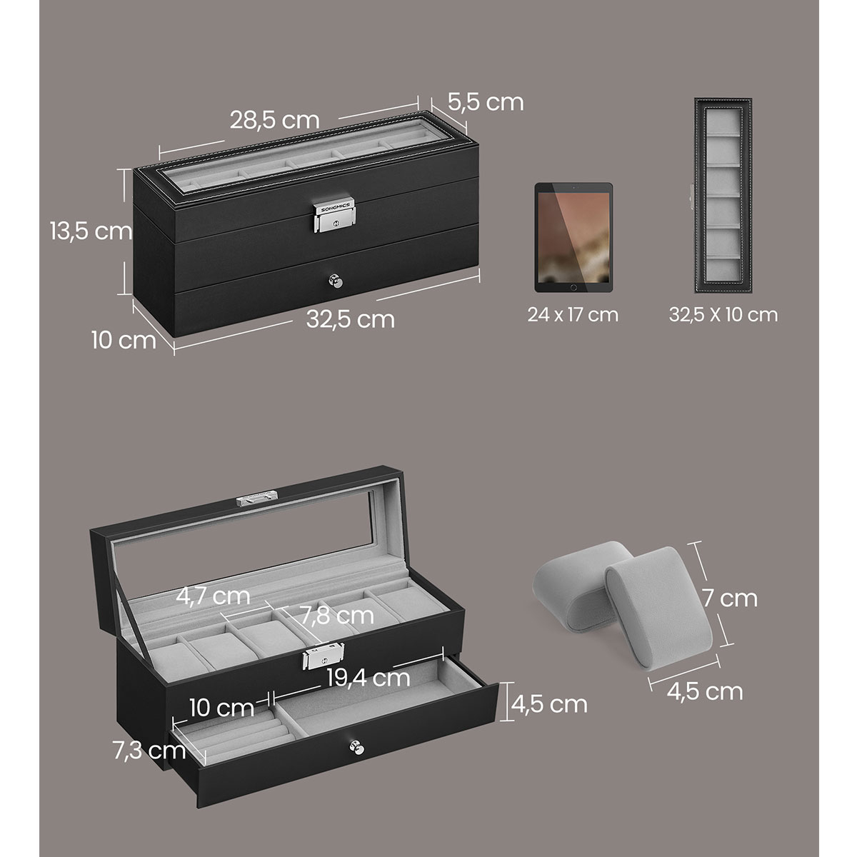 | SongmicsΘήκη Για 6 Ρολόγια & Κοσμήματα (32.5x10x13.5) Songmics JWB060G01