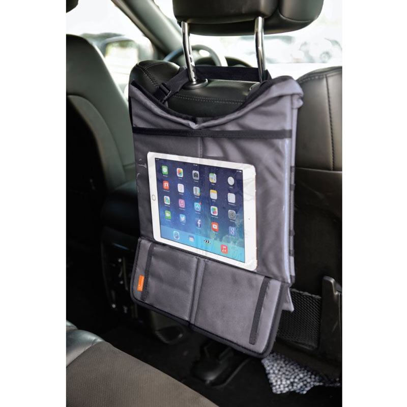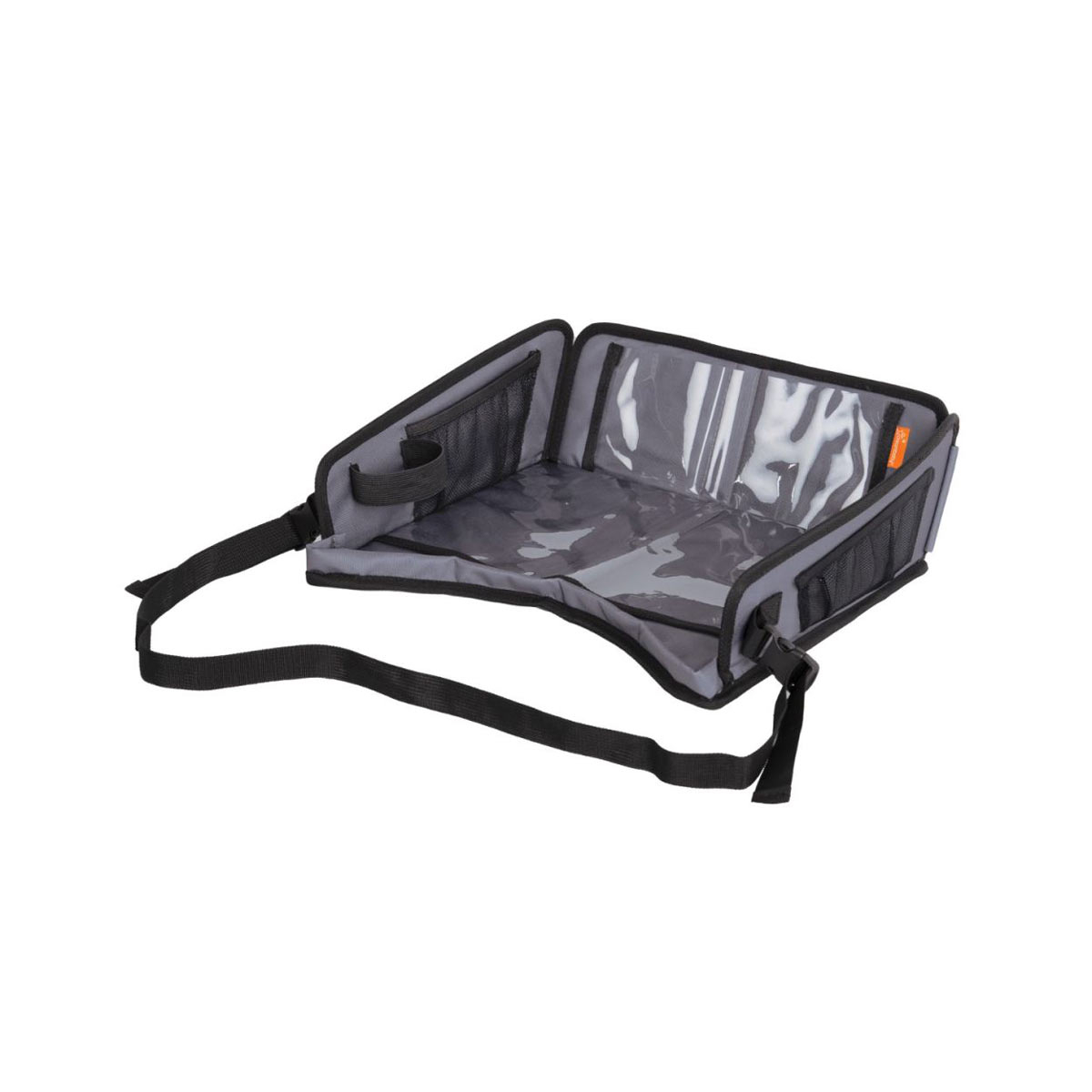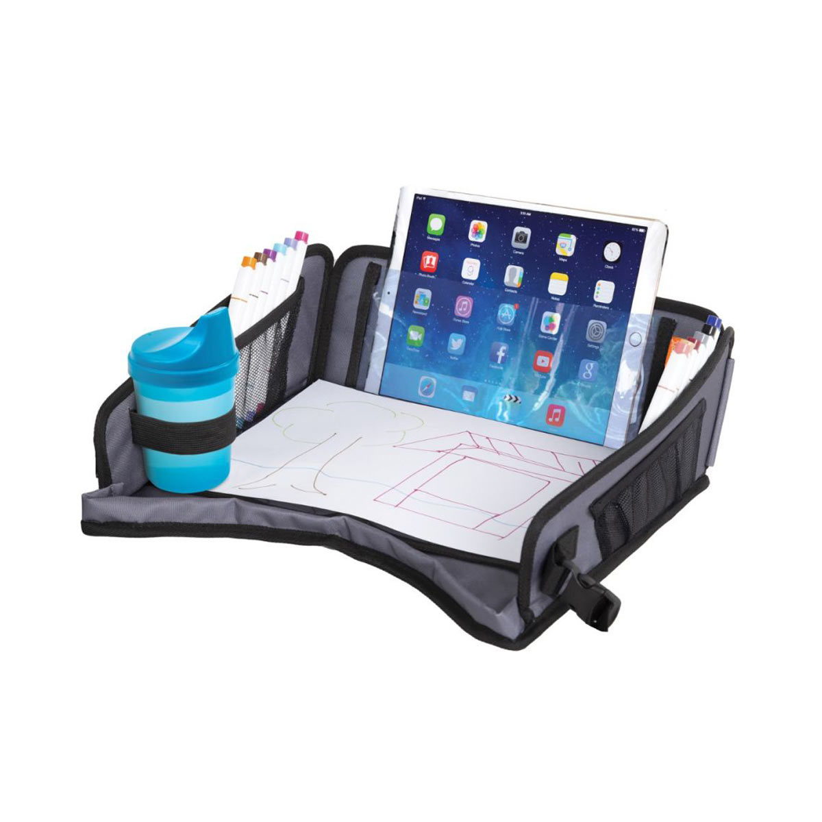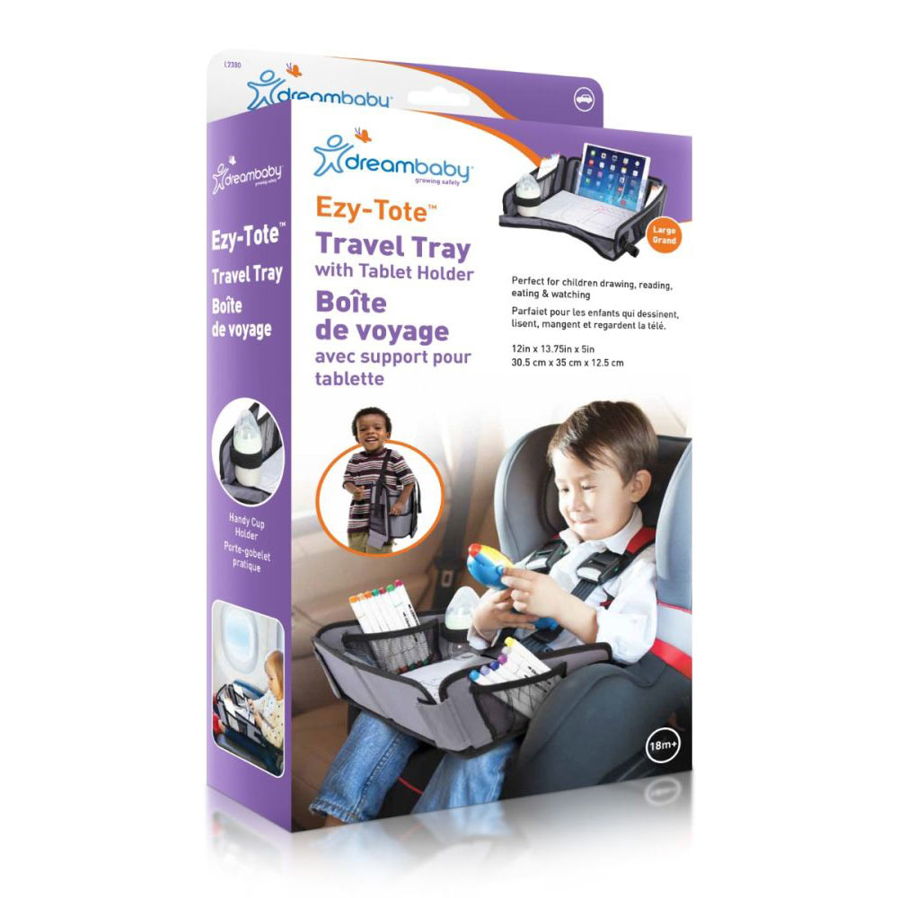 Δίσκος ταξιδίου με θήκες αποθήκευσης της εταιρείας Dream Baby. Διαθέτει ρυθμιζόμενο ιμάντα που δένει στην μέση του παιδιού για να παραμένει σταθερός ενώ μπορεί να χρησιμοποιηθεί για να το μεταφέρετε από και προς το αυτοκίνητο. Με θήκες για μαρκαδόρους, μολύβια, μπλοκ ζωγραφικής, παγούρι διατηρεί οργανωμένα τα πράγματα του παιδιού. Με άνετο χώρο για να ζωγραφίσει ή να παίξει κατά την διάρκεια της διαδρομής σας. Έχει 2 θέσεις για μικρά και μεγάλα tablets ώστε να βλέπει τα αγαπημένα του cartoon ή να παίζει. Μπορεί να τοποθετηθεί ανοιχτό σαν θήκη οργάνωσης στην πίσω πλευρά του μπροστινού καθίσματος.
