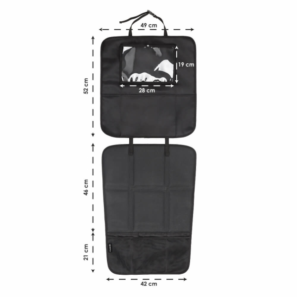 Προστατευτικό κάλυμμα καθίσματος σε μαύρο χρώμα από την εταιρεία Bebe Stars. Προστατεύει το κάθισμα του αυτοκινήτου από τυχόν γρατζουνιές, λεκέδες αλλά και την φθορά από το παιδικό κάθισμα. Διαθέτει πολλές θήκες αποθήκευσης και θέση για tablet μεγέθους έως 11.5 ίντσες. Μπορεί να χρησιμοποιηθεί ολόκληρο ή μόνο το ένα από τα 2 μέρη του προσφέροντάς σας ευελιξία. Η βάση του έχει αντιολισθητική επένδυση για να παραμένει σταθερό στην θέση του.