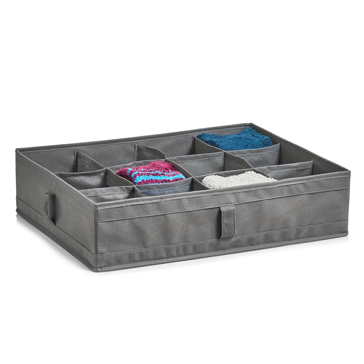 Θήκη οργάνωσης συρταριού 12 θέσεων κατασκευασμένη από συνθετικό ύφασμα non woven που αναπνέει σε γκρι χρώμα. Ιδανική για να αποθηκεύετε ζώνες, κάλτσες, εσώρουχα, γραβάτες κ.α. Όταν δεν χρησιμοποιείται, μπορεί να διπλωθεί και να αποθηκευτεί για εξοικονόμηση χώρου. Συνδυάστε τη με τα υπόλοιπα είδη της ίδιας σειράς για ένα ολοκληρωμένο αποτέλεσμα.