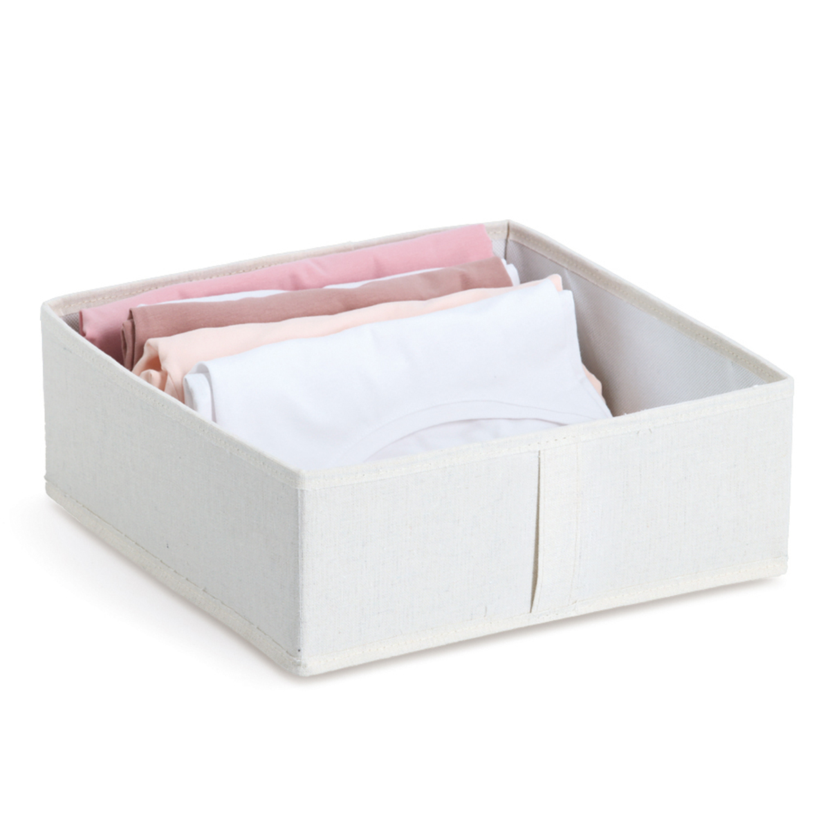 Θήκη οργάνωσης συρταριού κατασκευασμένη από συνθετικό ύφασμα non woven που αναπνέει σε εκρού χρώμα. Ιδανική για να αποθηκεύετε ζώνες, κάλτσες, εσώρουχα, γραβάτες κ.α. Όταν δεν χρησιμοποιείται, μπορεί να διπλωθεί και να αποθηκευτεί για εξοικονόμηση χώρου. Συνδυάστε τη με τα υπόλοιπα είδη της ίδιας σειράς για ένα ολοκληρωμένο αποτέλεσμα.