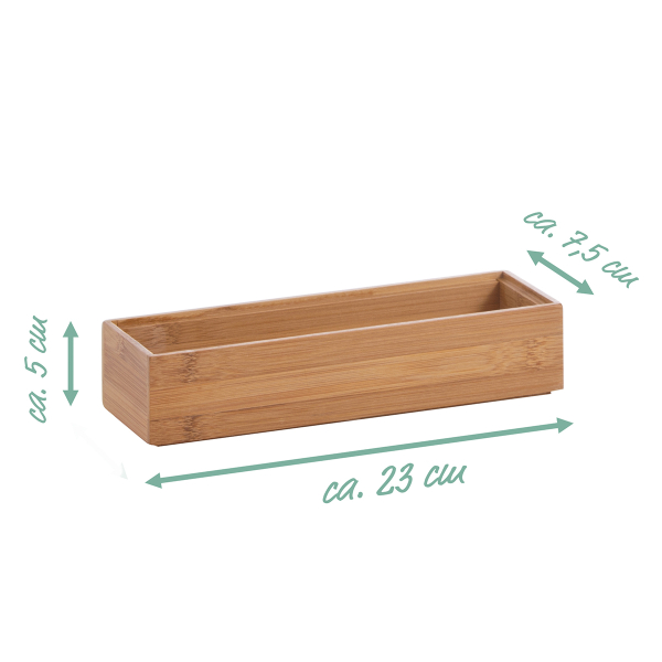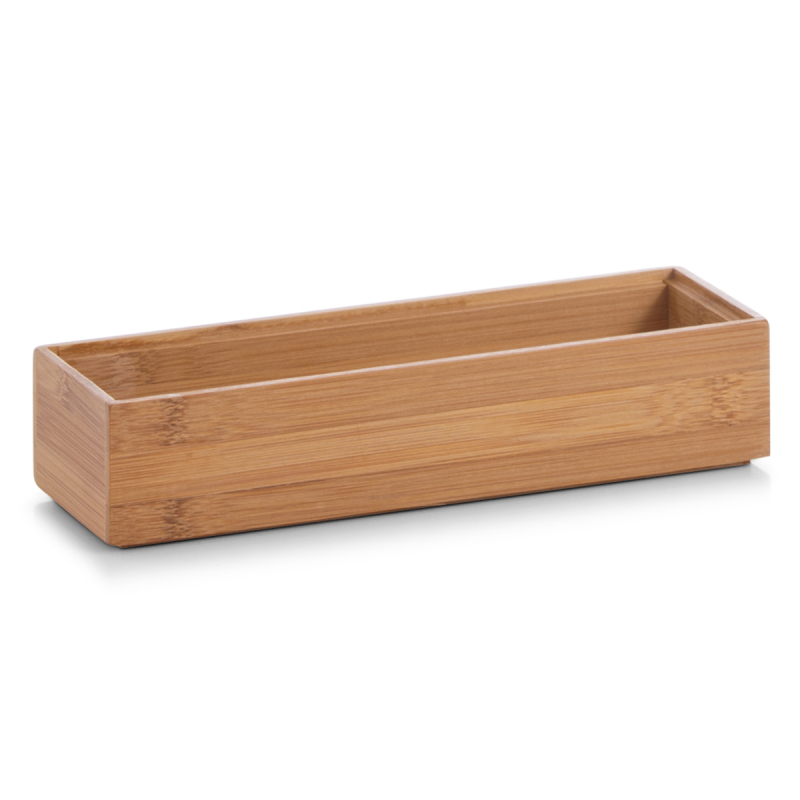 Θήκη οργάνωσης σε μπεζ χρώμα κατασκευασμένη από ξύλο bamboo. Μπορείτε να τη χρησιμοποιήσετε σαν αποθηκευτικό χώρο σε ένα ράφι ή σε συρτάρι. Δημιουργήστε τη δική σας σύνθεση για οργάνωση με τις θήκες στις υπόλοιπες διαστάσεις. Ιδανική για την κουζίνα, για μαχαιροπήρουνα και μικροπράγματα στο μπάνιο ή ως οργανωτής γραφείου. Θα κρατήσει οργανωμένα τα αντικείμενά σας, δίνοντας παράλληλα μια μοντέρνα πινελιά στην διακόσμηση σας.