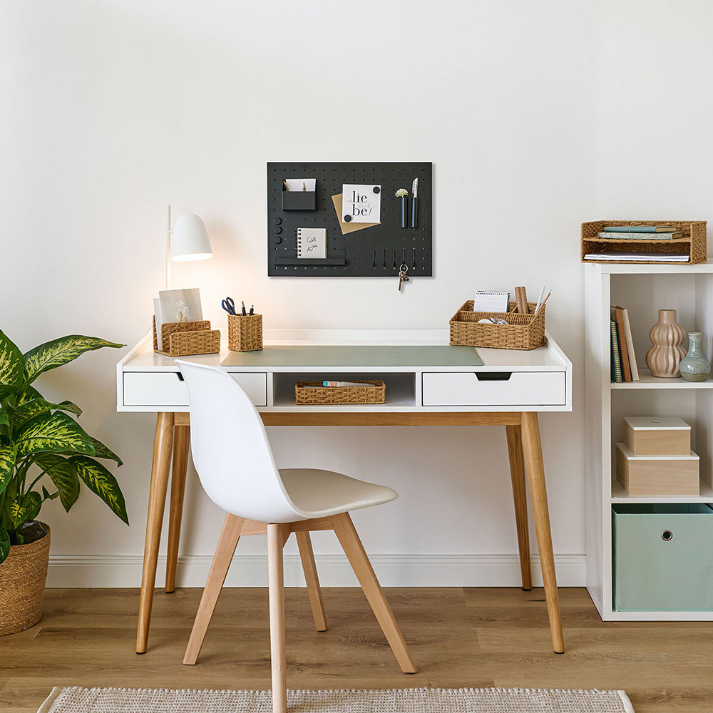 Οργανωτής γραφείου για γραφική ύλη, καλλυντικά ή ότι άλλο θέλετε για να έχετε πάντα τακτοποιημένα τα πράγματα σας. Είναι κατασκευασμένη από πλεγμένο χάρτινο σχοινί σε μπεζ χρώμα. Ιδανικό για να το τοποθετήσετε στο γραφείου ή στο μπουντουάρ. Διαθέτει 3 χωρίσματα για αποθήκευση που είναι ιδανικές για πινέλα, lip-gloss, μολύβια, στυλό κλπ. Συνδυάστε το με τα υπόλοιπα είδη του ίδιου σετ για ένα ολοκληρωμένο αποτέλεσμα στο χώρο σας.