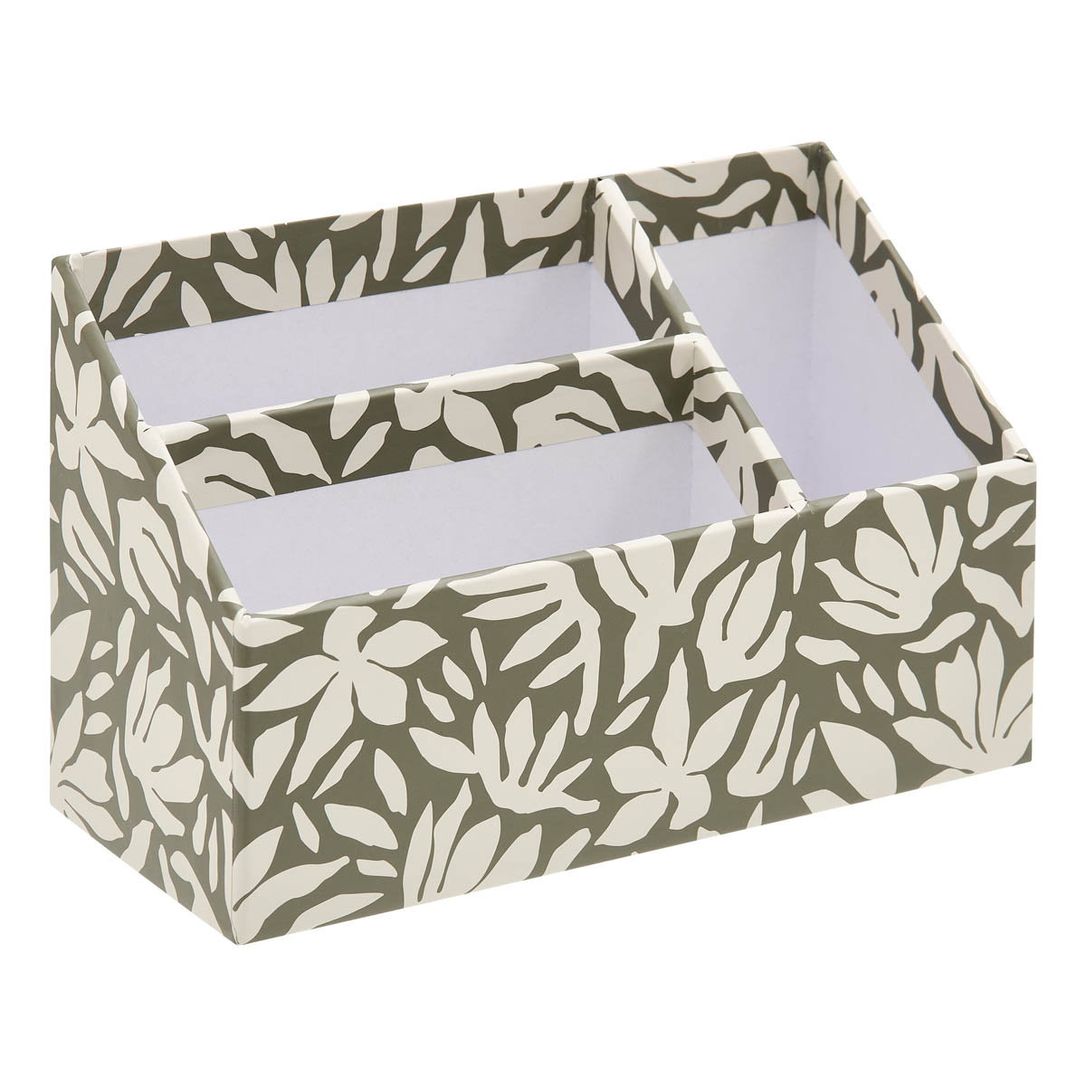 Θήκη οργάνωσης γραφείου με 3 θήκες για να έχετε τακτοποιημένη τη γραφική ύλη και τα μικροπράγματα του γραφείου σας. Είναι κατασκευασμένη από σκληρό χαρτόνι σε πράσινο-λευκό χρώμα. Συνδυάστε την με τα υπόλοιπα είδη οργάνωσης του ίδιου σχεδίου.
