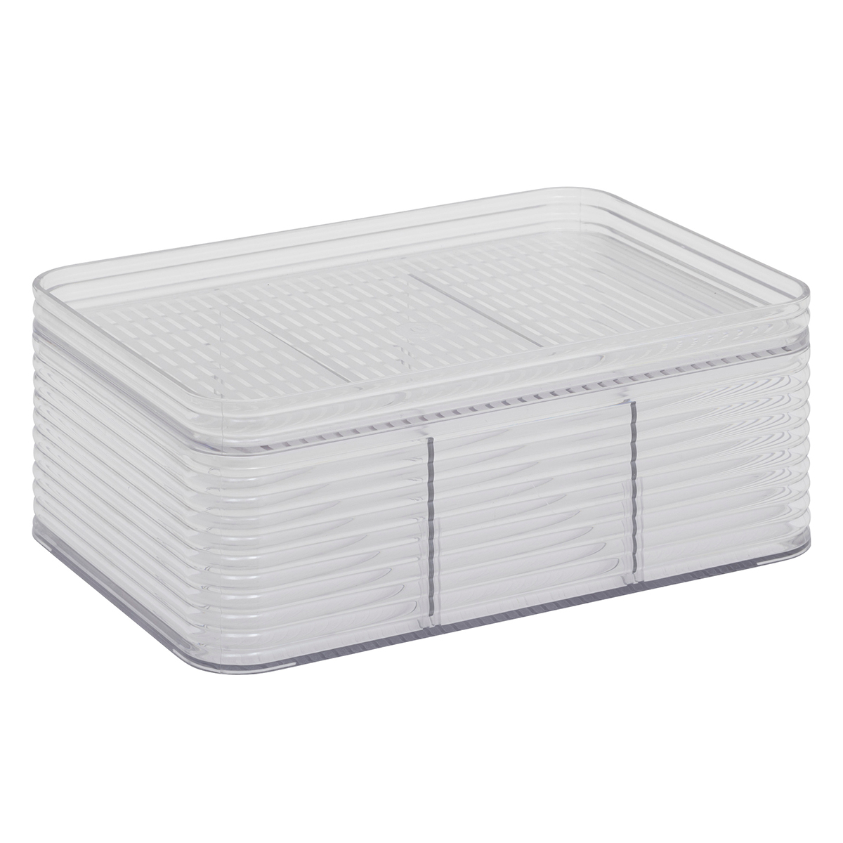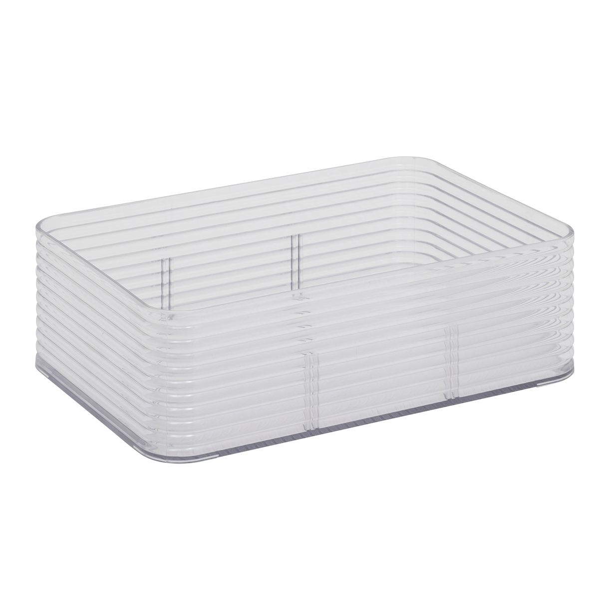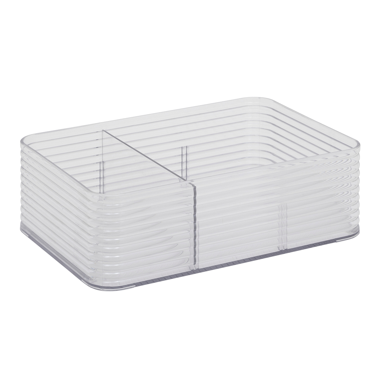 Θήκη οργάνωσης με 3 θέσεις και καπάκι, κατασκευασμένη από διάφανο πλαστικό υλικό. Τα διαχωριστικά είναι αποσπώμενα ώστε να διαμορφώσετε τους χώρους ανάλογα με τις ανάγκες σας. Ιδανική για καλλυντικά, κοσμήματα, μικροπράγματα ή ό,τι άλλο θέλετε. Μπορεί να τοποθετηθεί στο χώρο του μπάνιου, της κρεβατοκάμαρας ακόμα και ως οργανωτής γραφείου. Συνδυάστε το με τα υπόλοιπα προϊόντα της ίδιας συλλογής για ένα ολοκληρωμένο αποτέλεσμα.