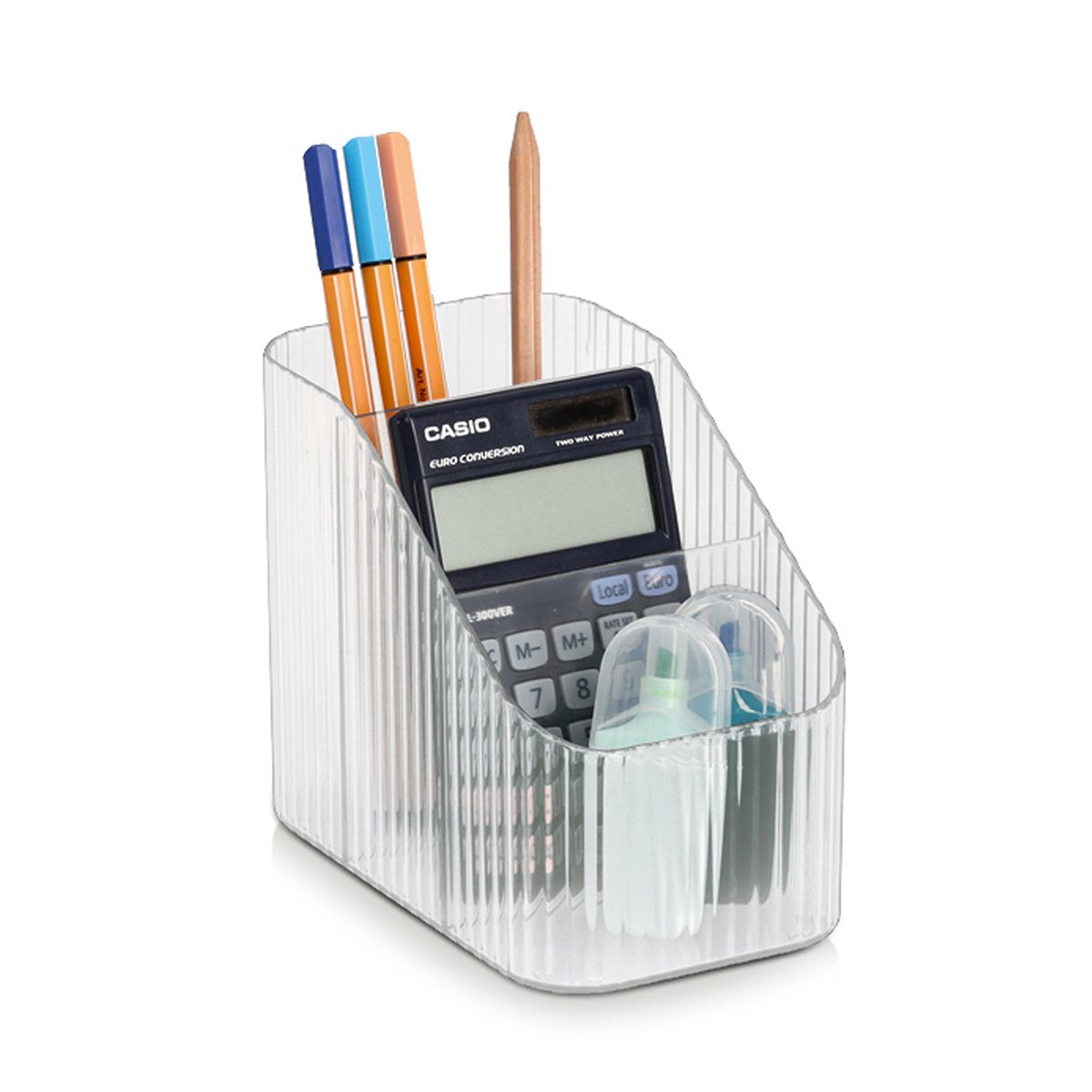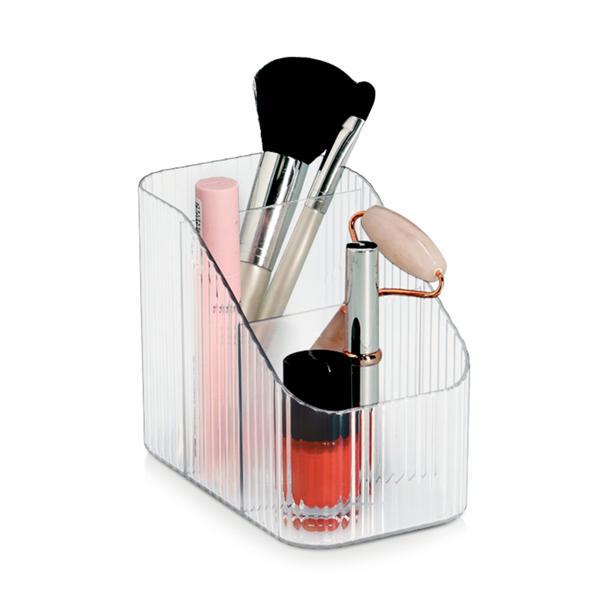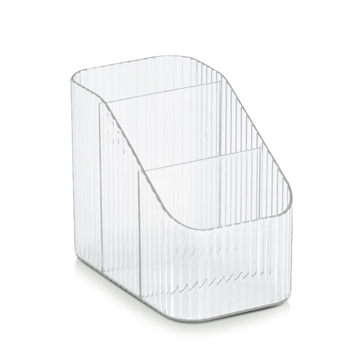 Θήκη οργάνωσης με 3 θέσεις, κατασκευασμένη από διάφανο πλαστικό υλικό. Μπορεί να χρησιμοποιηθεί στο μπάνιο, στο γραφείο, στην κουζίνα ή όπου αλλού θέλετε. Ιδανική θήκη για να τακτοποιήσετε τα καλλυντικά σας ή την γραφική ύλη σας.